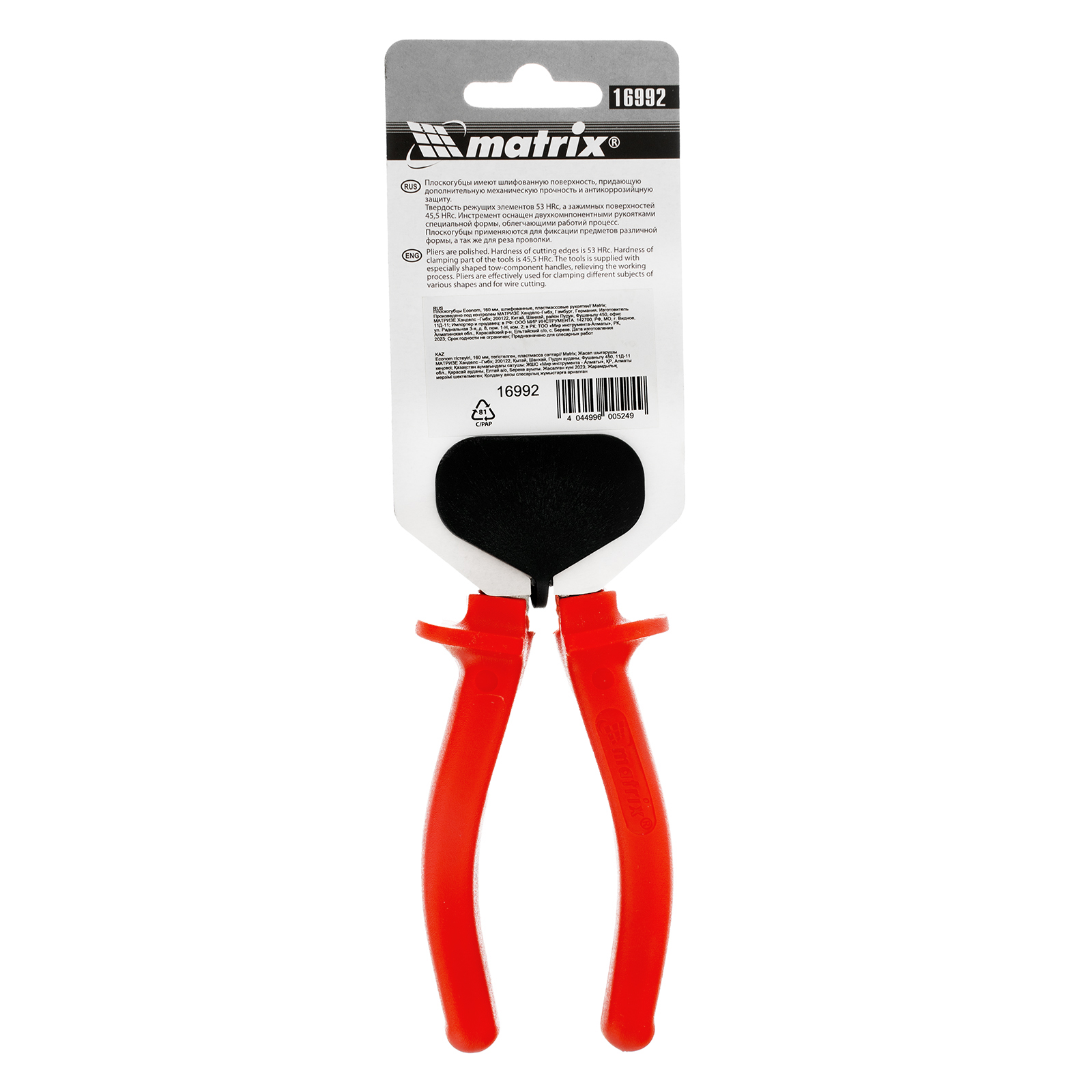 Плоскогубцы Econom, 160 мм, шлифованные, пластмассовые рукоятки Matrix в Воронеже