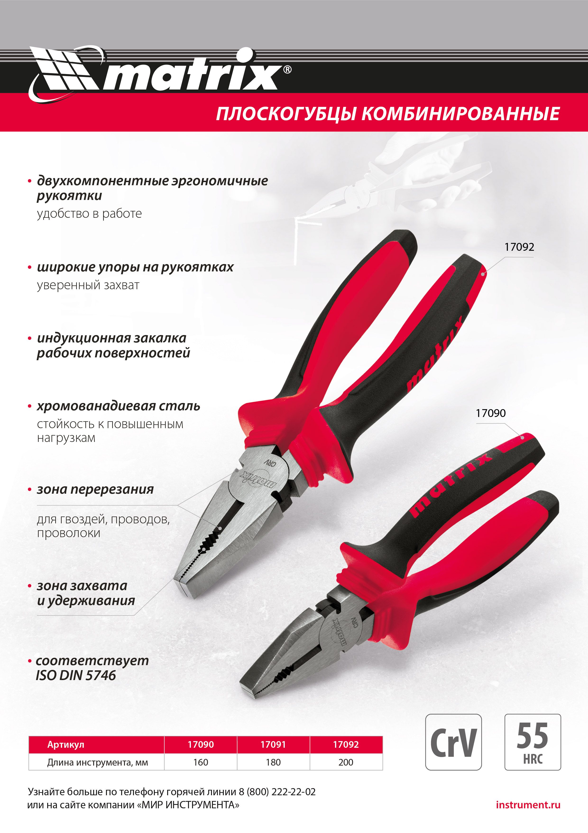 Плоскогубцы комбинированные, 180 мм, хром-ванадий, двухкомпонентные рукоятки Matrix в Воронеже