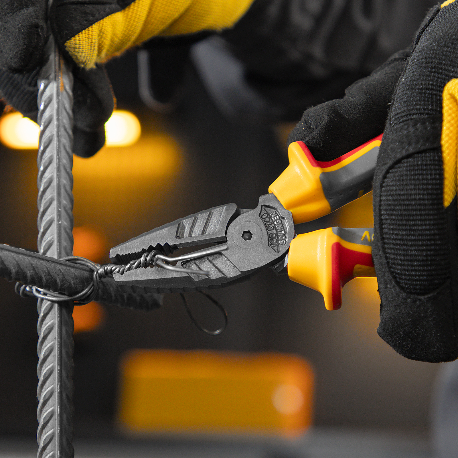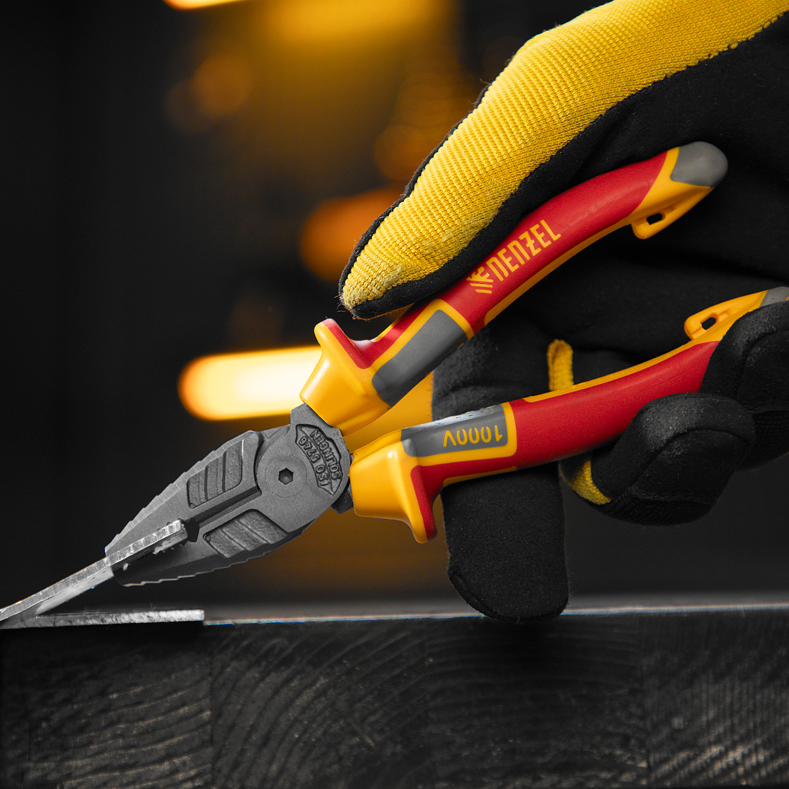 Комбинированные плоскогубцы Denzel 17085 длиной 165 мм, с диэлектрическими трехкомпонентными рукоятками, выдерживающими до 1000 В, предназначены для выполнения работ с токопроводящими элементами. С их помощью можно захватить или согнуть мелкие и крупные детали, перекусить проволоку или перерезать провод. Инструмент подходит для работы с мягкой проволокой (алюминиевой, медной, с пределом прочности 220 Н/мм2) диаметром до 4 мм, проволокой средней жесткости и гвоздями (750 Н/мм2) диаметром до 3,1 мм, и жесткой (предел прочности 1800 Н/мм2) толщиной до 2 мм. Также плоскогубцы можно использовать в качестве гаечного ключа. Инструмент незаменим для проведения слесарных и монтажных работ с различными компонентами и материалами. Внимание: перед началом работ следует отключить напряжение!