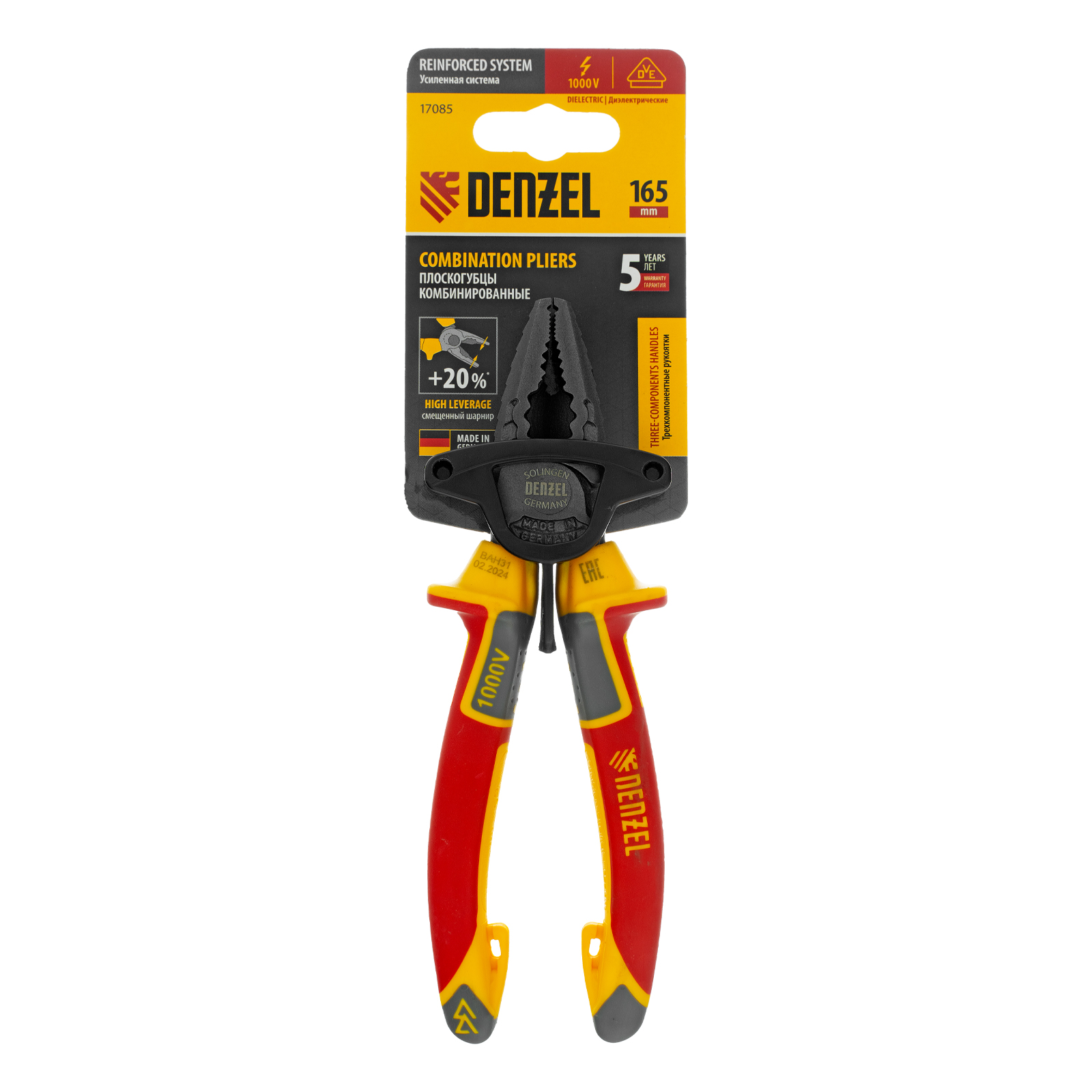Плоскогубцы комбинированные, диэлектрические трехкомпонентные рукоятки до 1000 В, 165 мм Denzel в Воронеже