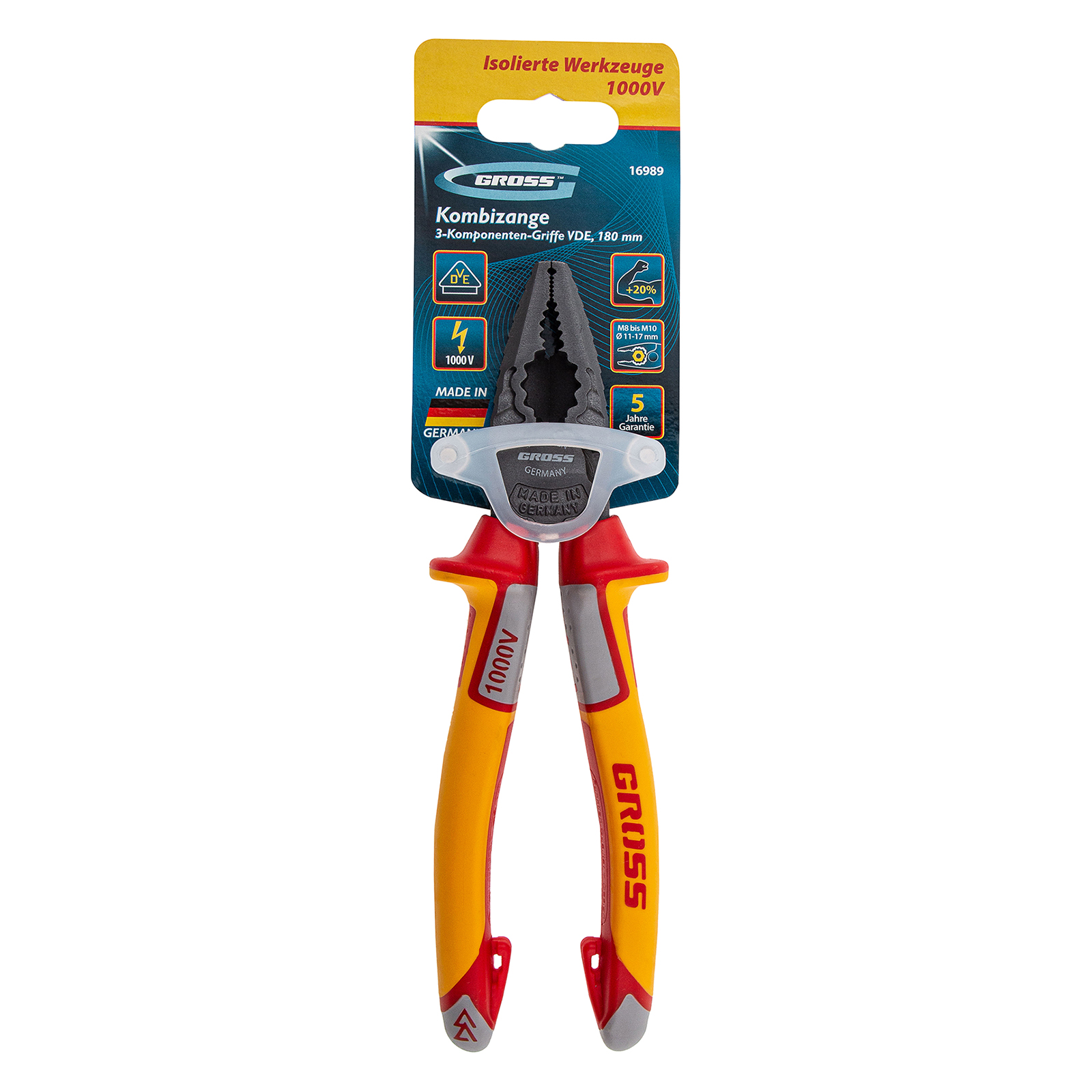 Плоскогубцы комбинированные, диэлектрические трехкомпонентные рукоятки до 1000 В, 180 мм Gross в Воронеже