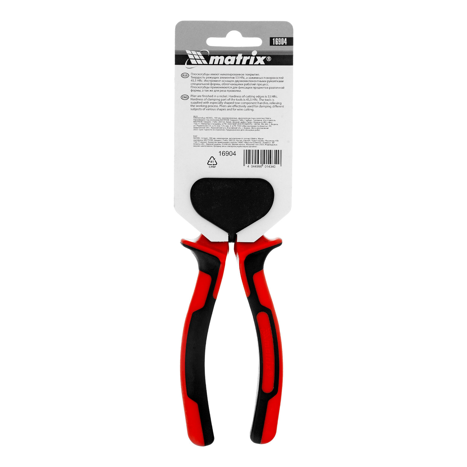Плоскогубцы Nickel, 180 мм, никелированные, двухкомпонентные рукоятки Matrix в Воронеже
