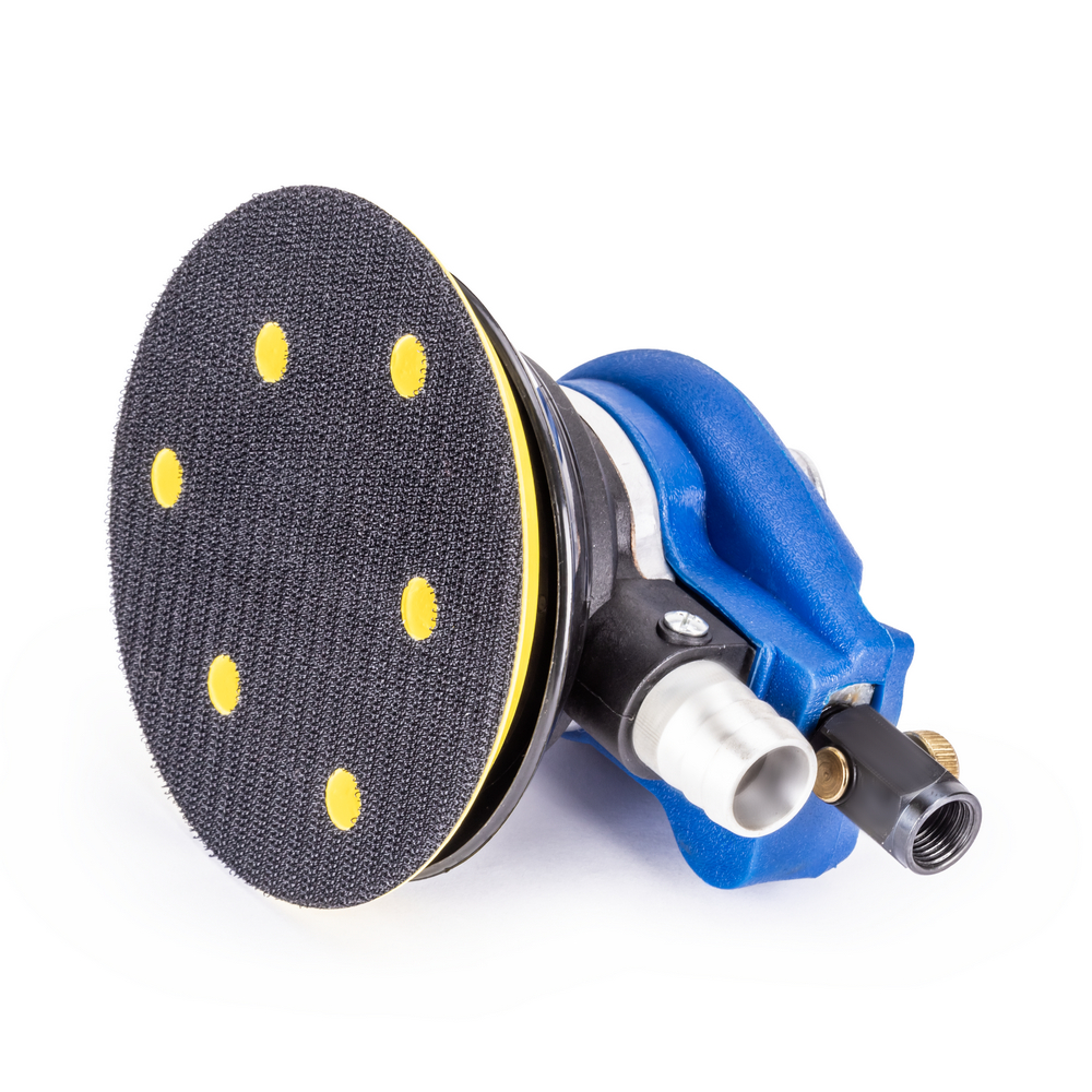 Пневматическая эксцентриковая шлифовальная машина или пневмошлифмашина AERO 6,3/125 предназначена для качественной обработки поверхностей (дерево, пластмасса или металл), перед покраской или покрытием лаком. Шлифмашина позволяет быстро очищать, как выпуклые, так и плоские поверхности, исключая появление царапин и обеспечивая равномерность обработки. Изделие имеет регулировку скорости воздушного потока что весьма удобно при обработке поверхностей из различного материала и работе с кругами с разным типом зернистости. Рабочим инструментом шлифмашины является пластиковый диск с липучкой (опорная тарелка), на который крепится шлифовальный круг. AERO 6,3/125 рассчитана на установку шлифовальных кругов диаметром 125 мм и работает от воздушного компрессора, с рабочим давлением в 6,3 бар и расходом воздуха - 141 л/мин.  AERO 6,3/125 развивает при этом максимальную скорость вращения в 10 000 об/мин при ходе эксцентрика в 2,4 мм и амплитуде колебаний 5 мм. Для удобного и надежного подключения оснащается быстросъемным соединением Rapid M. Изделие оснащено интегрированным пылеотводом включающим в себя шланг длиной 1,2 м и диаметром 20 мм и тканевый мешок для сбора пыли. Корпус изделия изготовлен из ударопрочного алюминия, а рукоятка оснащена прорезиненной оболочкой с помощью которой осуществляется хорошее удержание инструмента и низкий уровень вибраций.