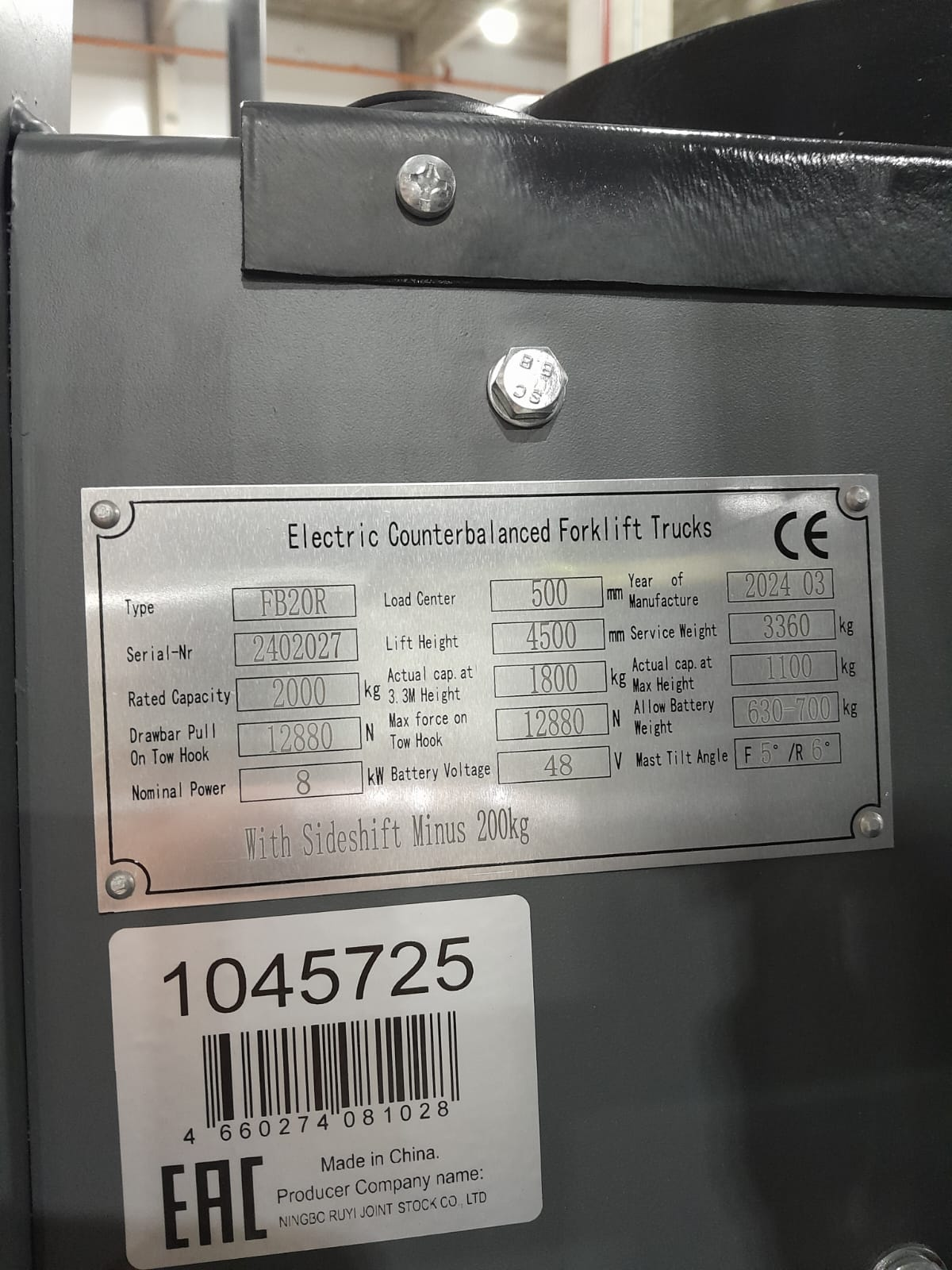 • Погрузчик электрический четырехопорный TOR 2,0 т 4,0 м FB20R сайдшифт купить в Москве с доставкой по всей России | ProtosMarket.ru