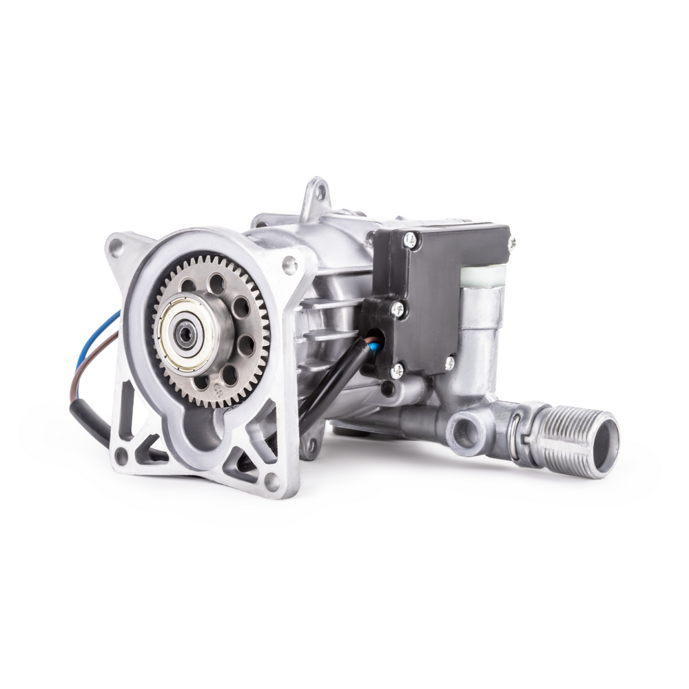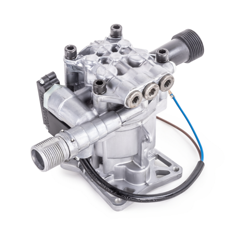 Помпа высокого давления для моек KVAZARRUS K3, K4 является ключевым рабочим узлом моек высокого давления и отвечает за нагнетание потока воды под высоким давлением за счет обратно-поступательного движения трех поршней осуществляемого с помощью аксиального приводного механизма косой шайбы. Изготовлена из высококачественного алюминия и отличается высокими основными рабочими параметрами по давлению и производительности.Также помпа оснащена системой "AUTOSTOP" которая имеет интегрированный манометрический выключатель моментально отключающий электродвигатель при достижении максимального давления в системе после отпускания клавиши на пистолете, благодаря чему исключается его холостой ход, что обеспечивает экономию потребляемой электроэнергии и минимизирует нагрев электродвигателя, а также снижает износ уплотнительных элементов помпы, что способствует увеличению рабочего ресурса аппарата.