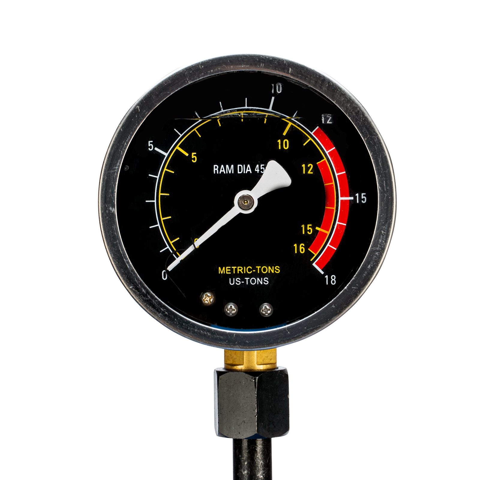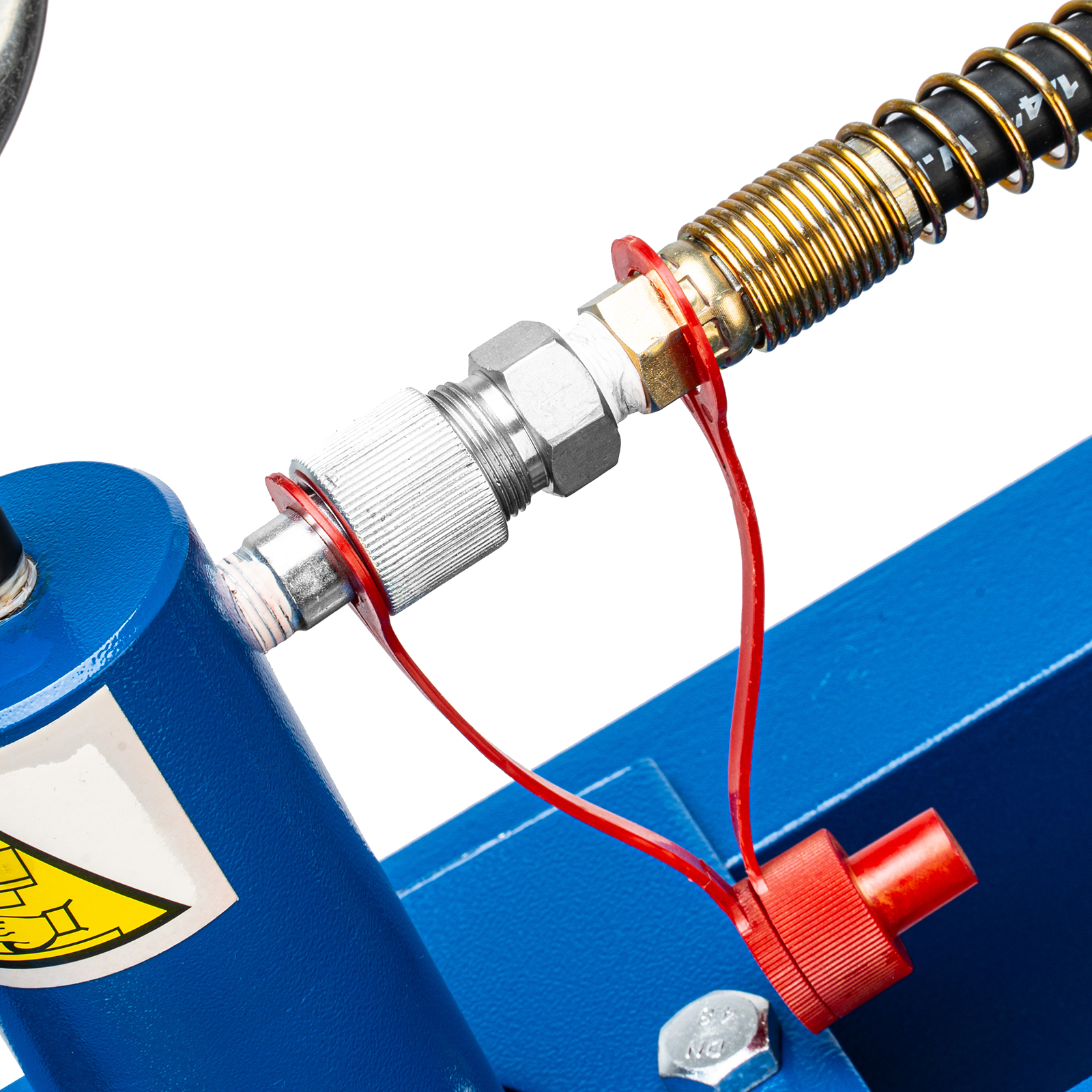 - Удобный контроль прикладываемого усилия — пресс оснащен глицеринозаполненным манометром.