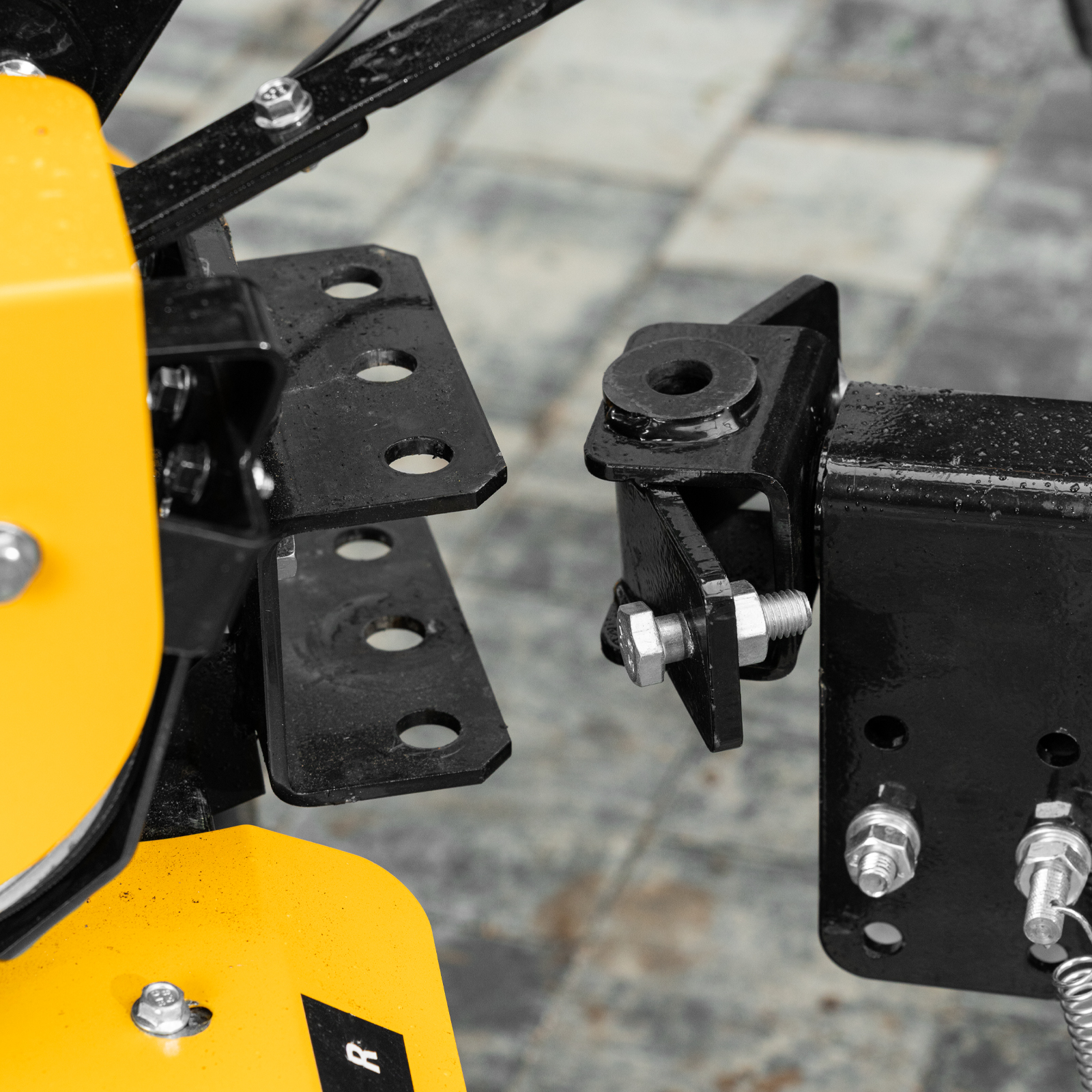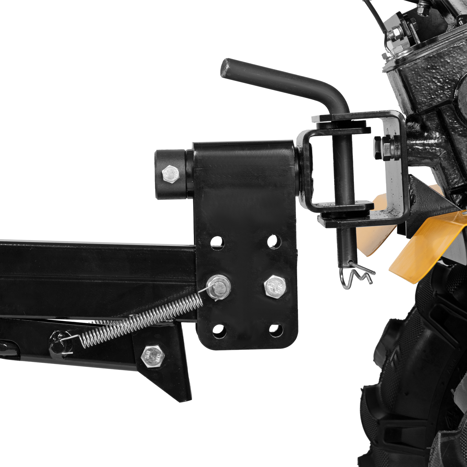 - Совместимость со всеми мотоблоками — прицеп поставляется с универсальной регулируемой сцепкой.