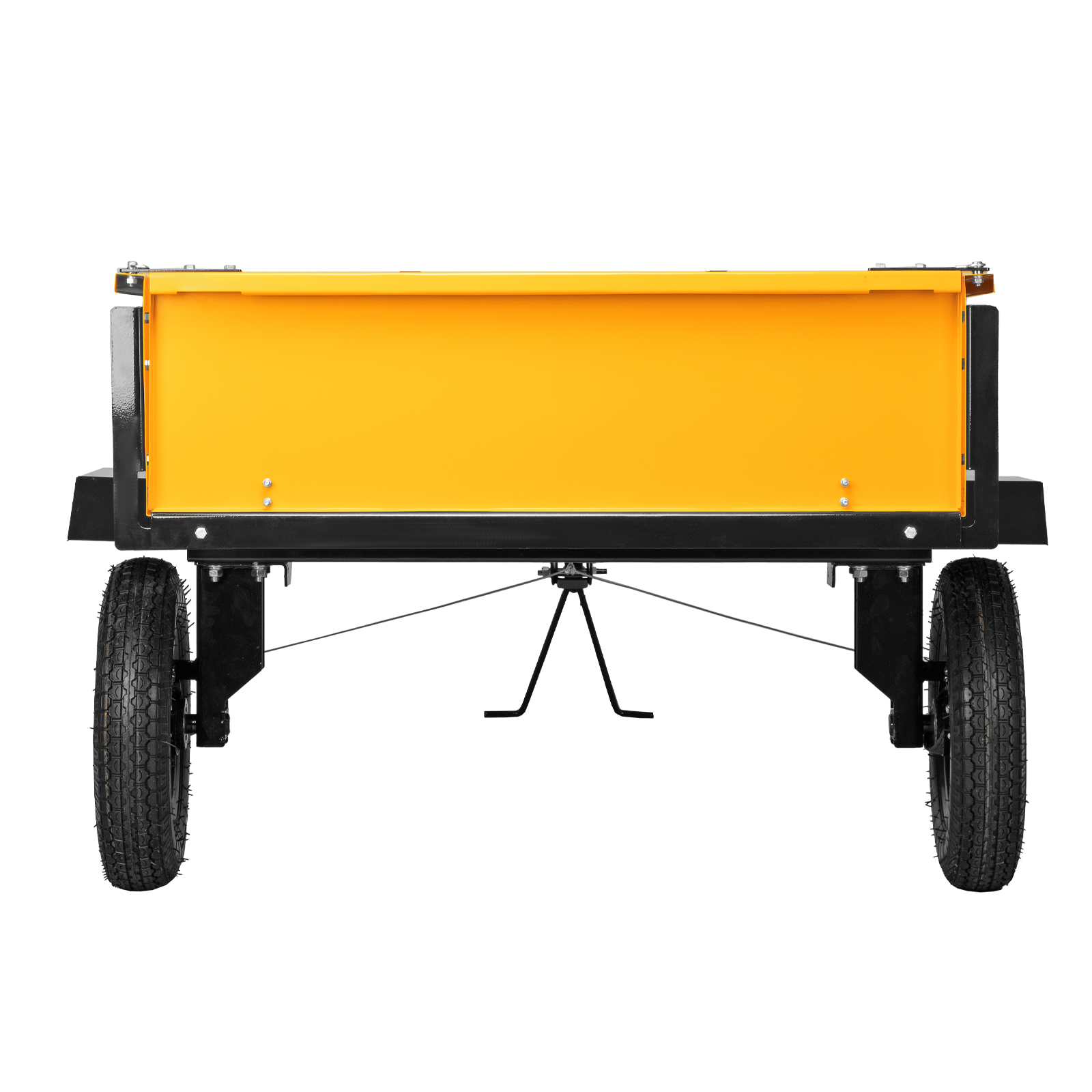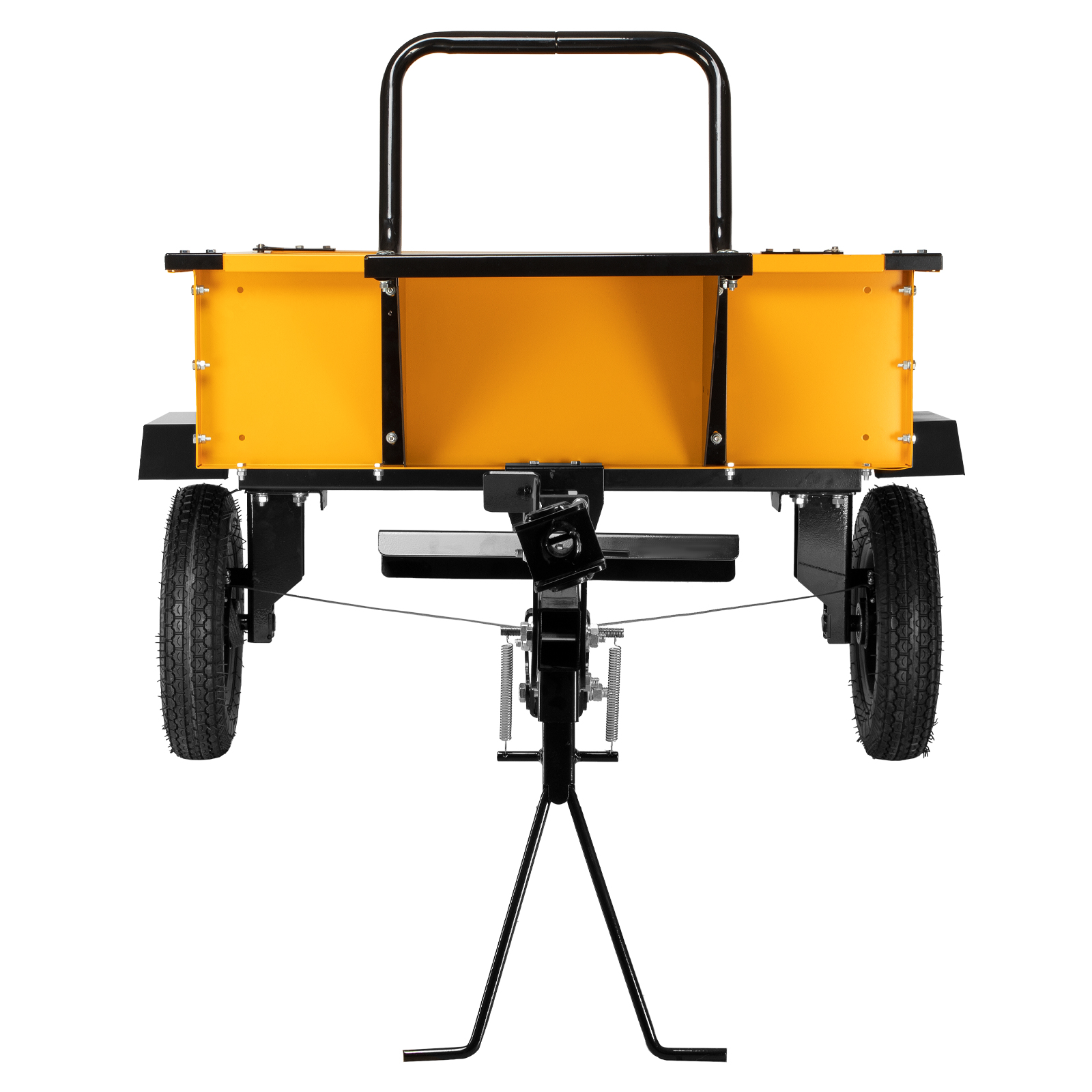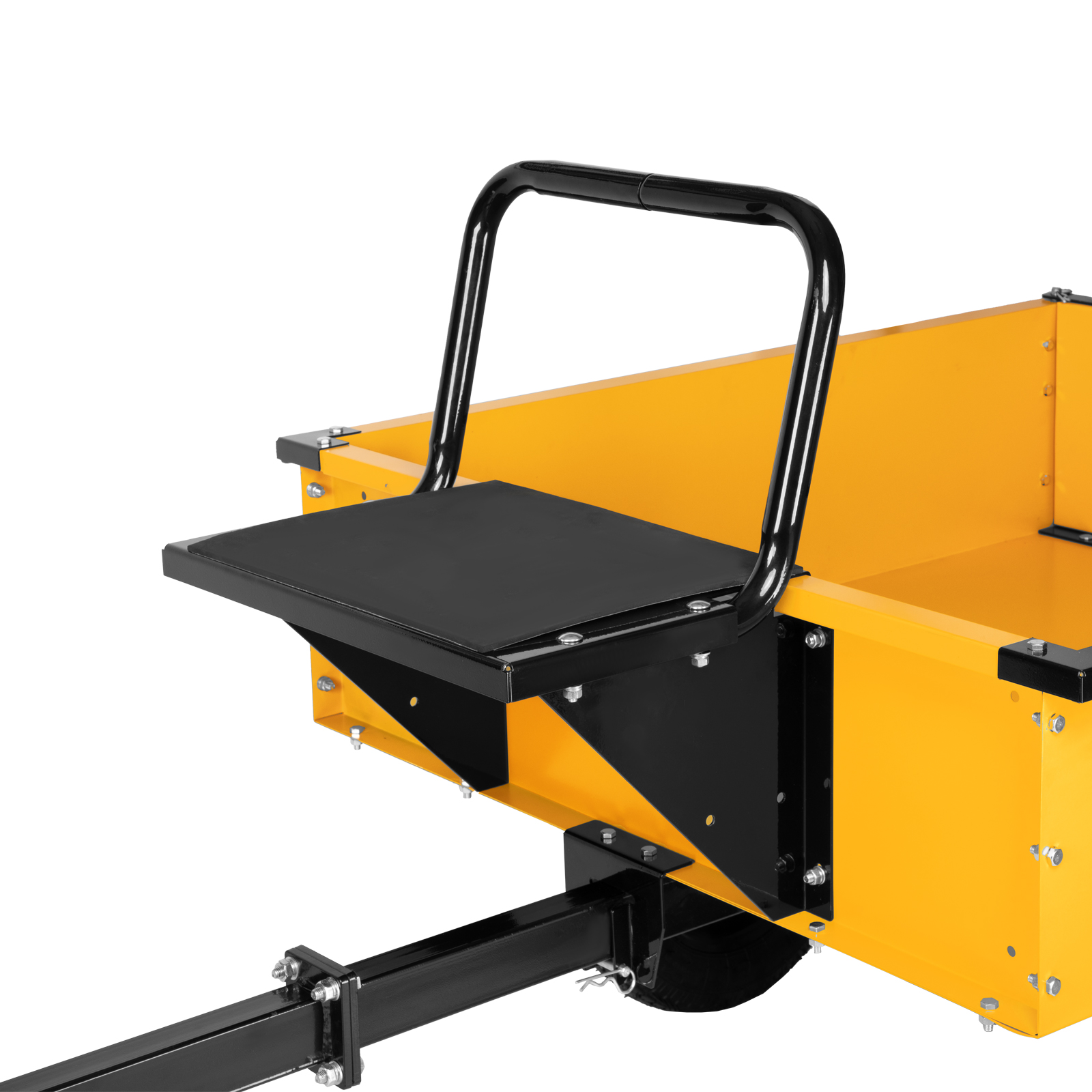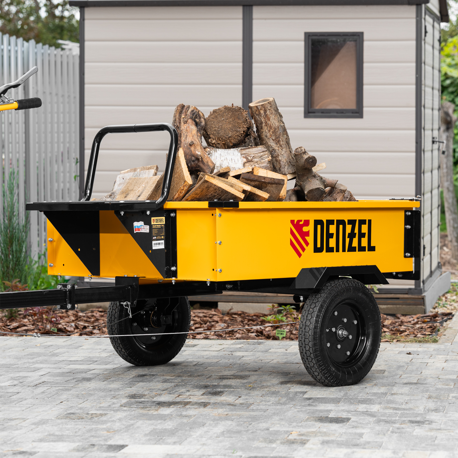 Прицеп Denzel TT-500 59950 с оцинкованным кузовом и регулируемой сцепкой, с колесами размером 4.00-10, в упаковке, имеет общую грузоподъемность 500 кг. Позволяет использовать мотоблок в качестве транспортного средства, а также перевозить различные грузы. Прицеп самосвального типа с функцией опрокидывания удобен для выгрузки. Приспособление пригодится в сельском хозяйстве и коммунальной сфере.