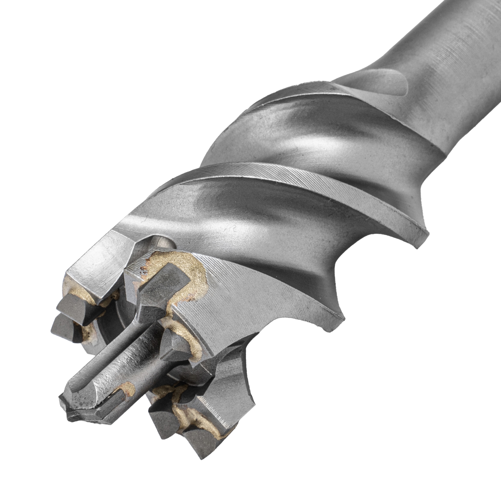 - Эффективная работа — особая конструкция рабочей головки позволяет проходить армированный бетон без риска деформации бура.