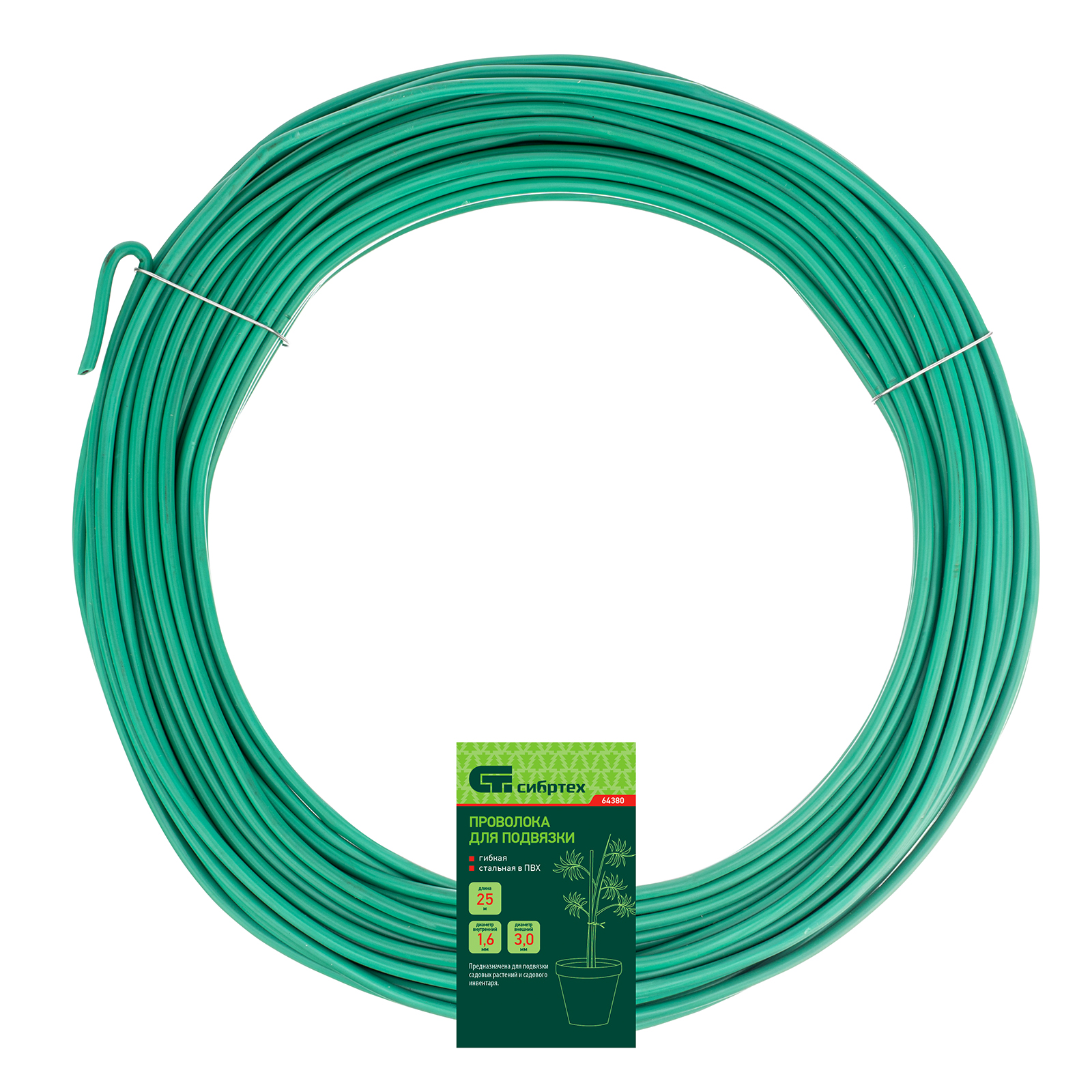 Проволока для подвязки, стальная в ПВХ (зеленый) 25 м, внутр. 1.6 мм / внеш. 3 мм Сибртех в Воронеже