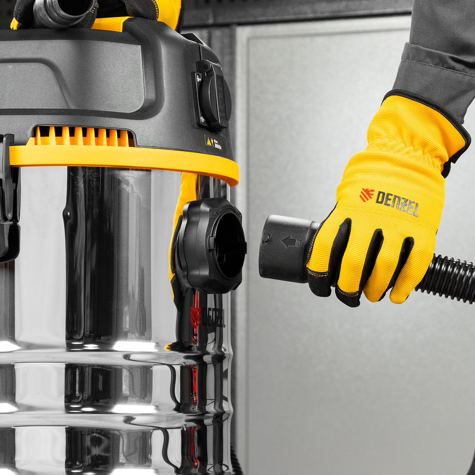 Пылесос строительный Denzel RVC30 28203 мощностью 1400 Вт, с баком объемом 30 л и шлангом длиной 3 м, оснащен розеткой с автосинхронизацией и предназначен для уборки бетонной, кирпичной пыли, опилок, стружки, также предусмотрена функция сбора воды. К пылесосу можно подключить электроинструмент, чтобы минимизировать количество пыли, образующейся в результате пиления, сверления, фрезерования. Техника используется во время проведения строительных и ремонтных работ, будет полезна для поддержания чистоты в мастерской, гараже, производственном помещении.