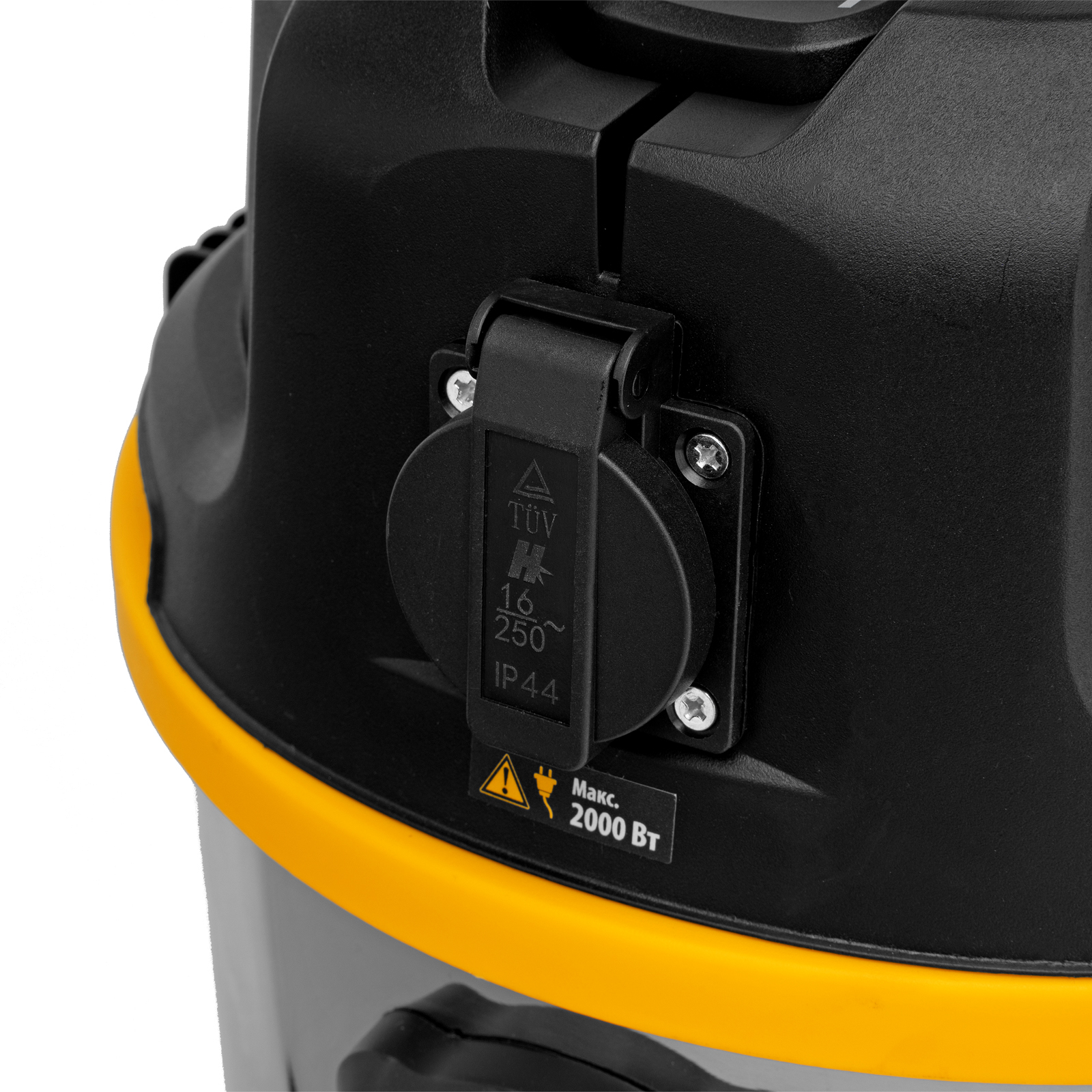 Функция полуавтоматической очистки_Функция выдува_Мешки и фильтры в комплекте_Наличие встроенной розетки для подключения электроинструмента_Возможность сбора жидкости |