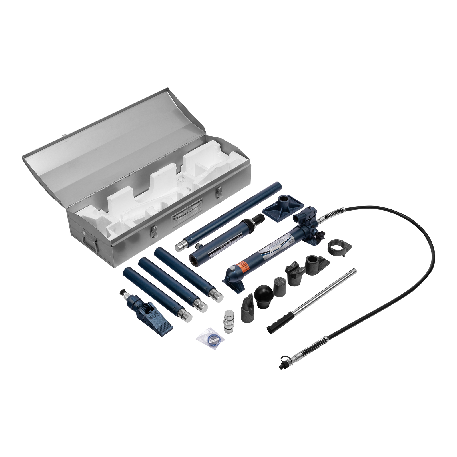 Гидравлическая растяжка Stels 51353 в наборе из 17 предметов, включающем гидронасос, цилиндр, удлинители, адаптер, основание, 7 сменных насадок, и упакованном в металлический кейс, рассчитана на усилие до 10 т и используется для восстановления деформированных металлоконструкций, преимущественно элементов автомобильного кузова. Будет полезна в автомастерской, а также для проведения самостоятельного кузовного ремонта.