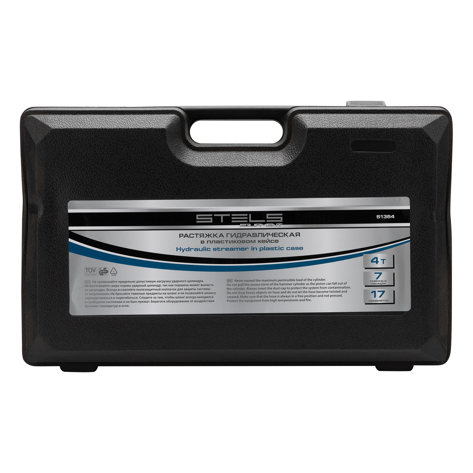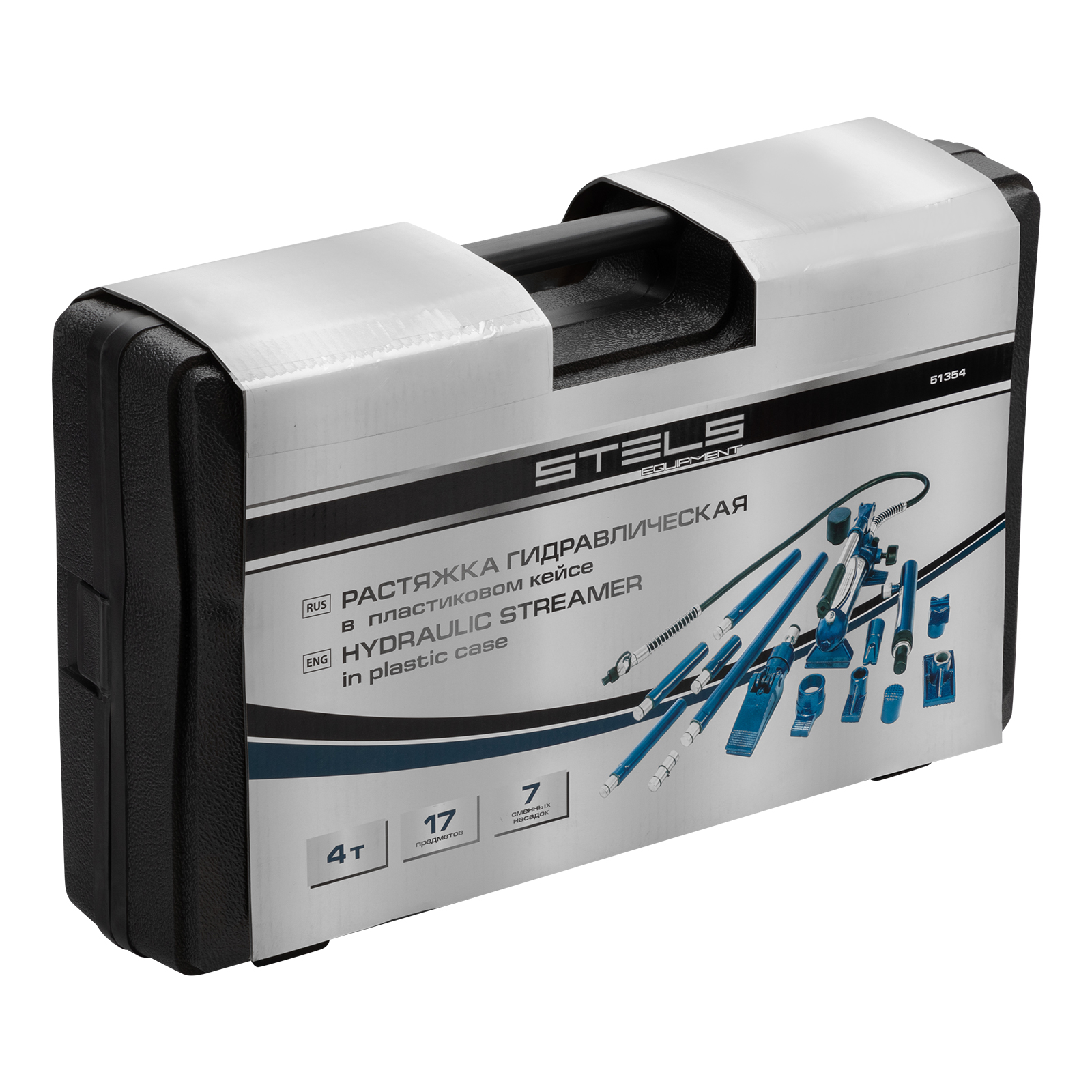 Растяжка гидравлическая, 4 т, набор из 17 предметов, 7 сменных насадок, в пластиковом кейсе Stels в Воронеже
