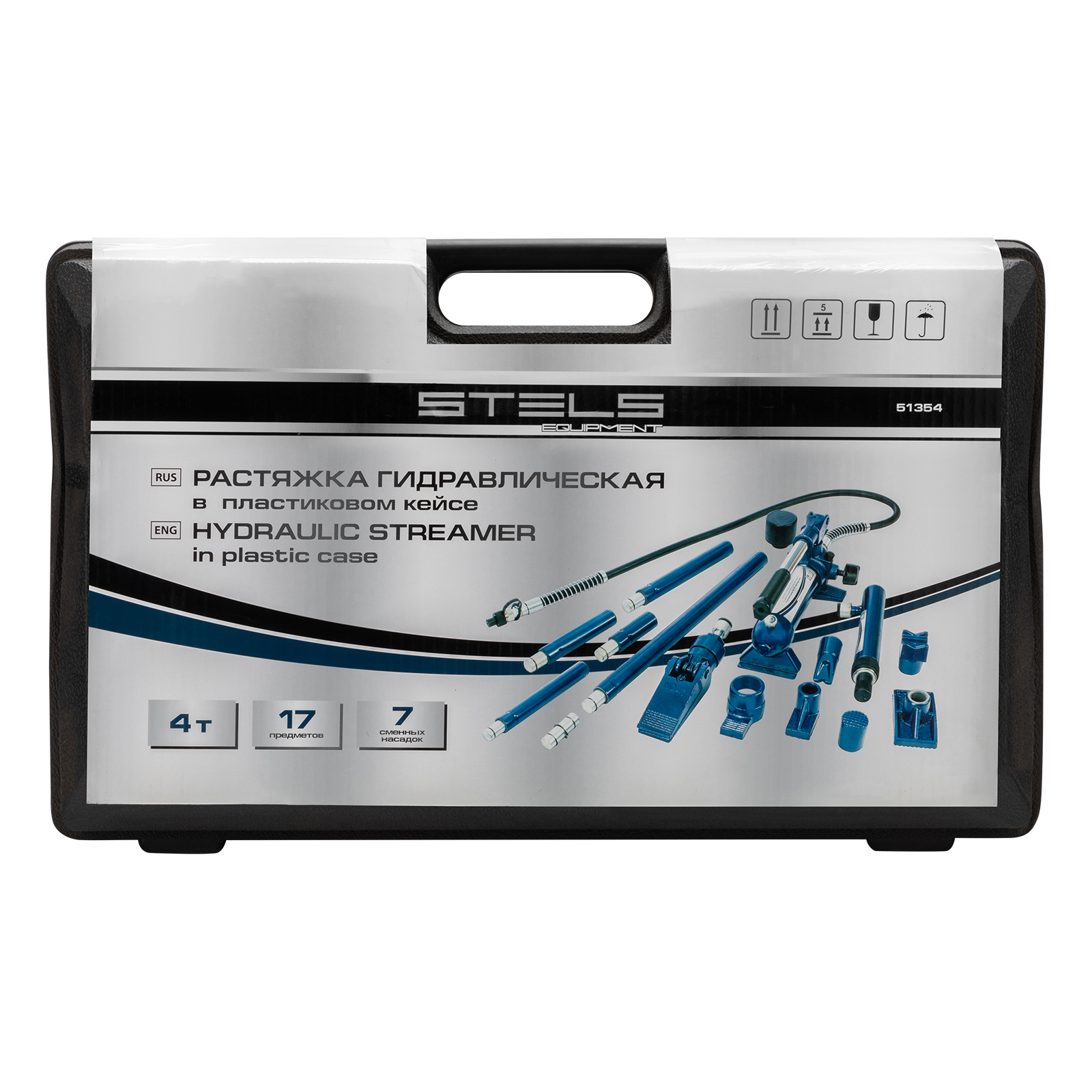 Гидравлическая растяжка Stels 51354, рассчитанная на усилие до 4 т, — компактный набор в пластиковом кейсе, включающий 17 предметов: цилиндр, гидронасос, адаптер, удлинители, основание и 7 сменных насадок. Используется для проведения кузовного ремонта и рихтовки металлических конструкций. Растяжка удобна для восстановления геометрии проемов автомобильных дверей и окон, а также значительных по площади участков кузова. Комплект пригодится в автосервисе, а также для работы в гараже.
