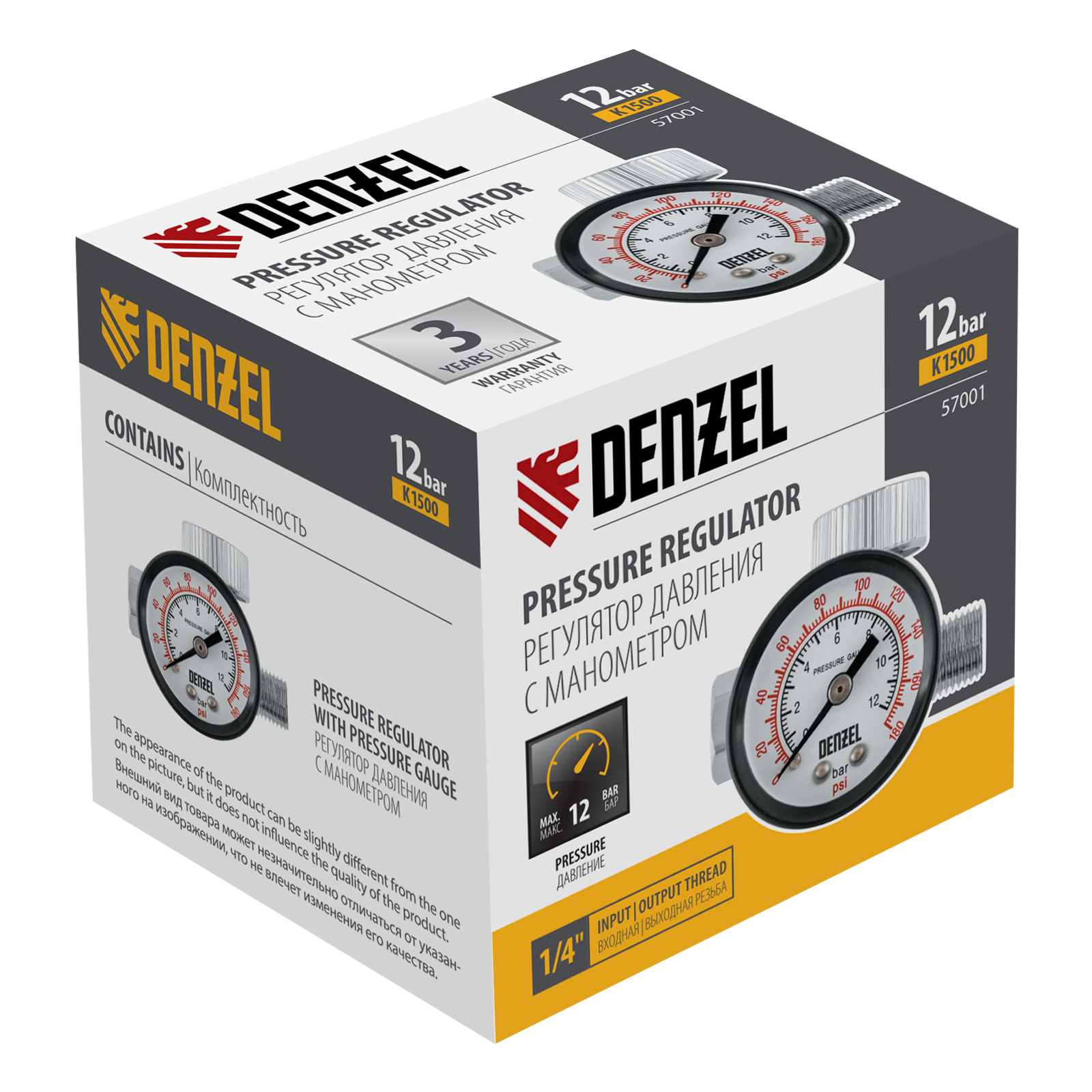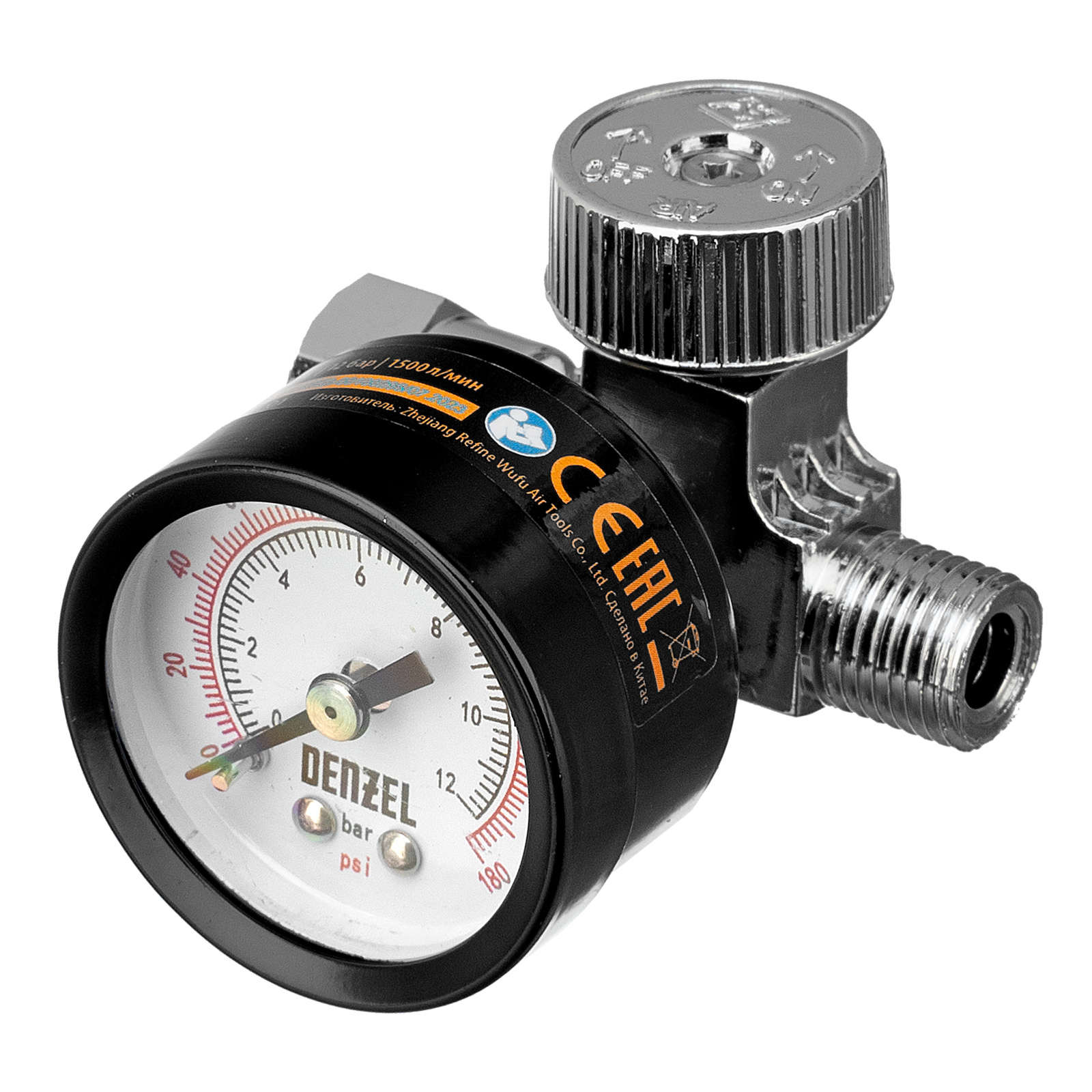 Регулятор давления с манометром для краскораспылителя K1500, 12 бар, 1/4" Denzel в Воронеже