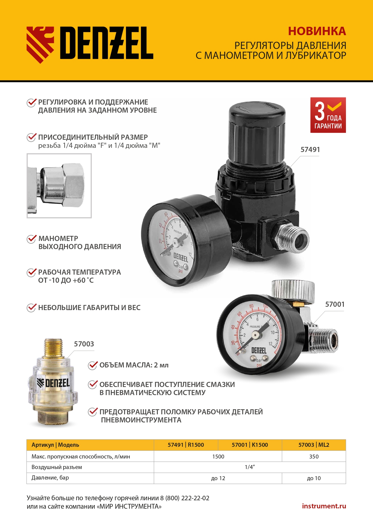Регулятор Denzel K1500 57001 с присоединительным размером 1/4" имеет пропускную способность 1500 л/мин и предназначен для установки и поддержания на заданном уровне давления до 12 бар. Подключается к компрессору и позволяет обеспечить эффективную работу пневмоинструмента. Оптимален для использования совместно с краскораспылителем.