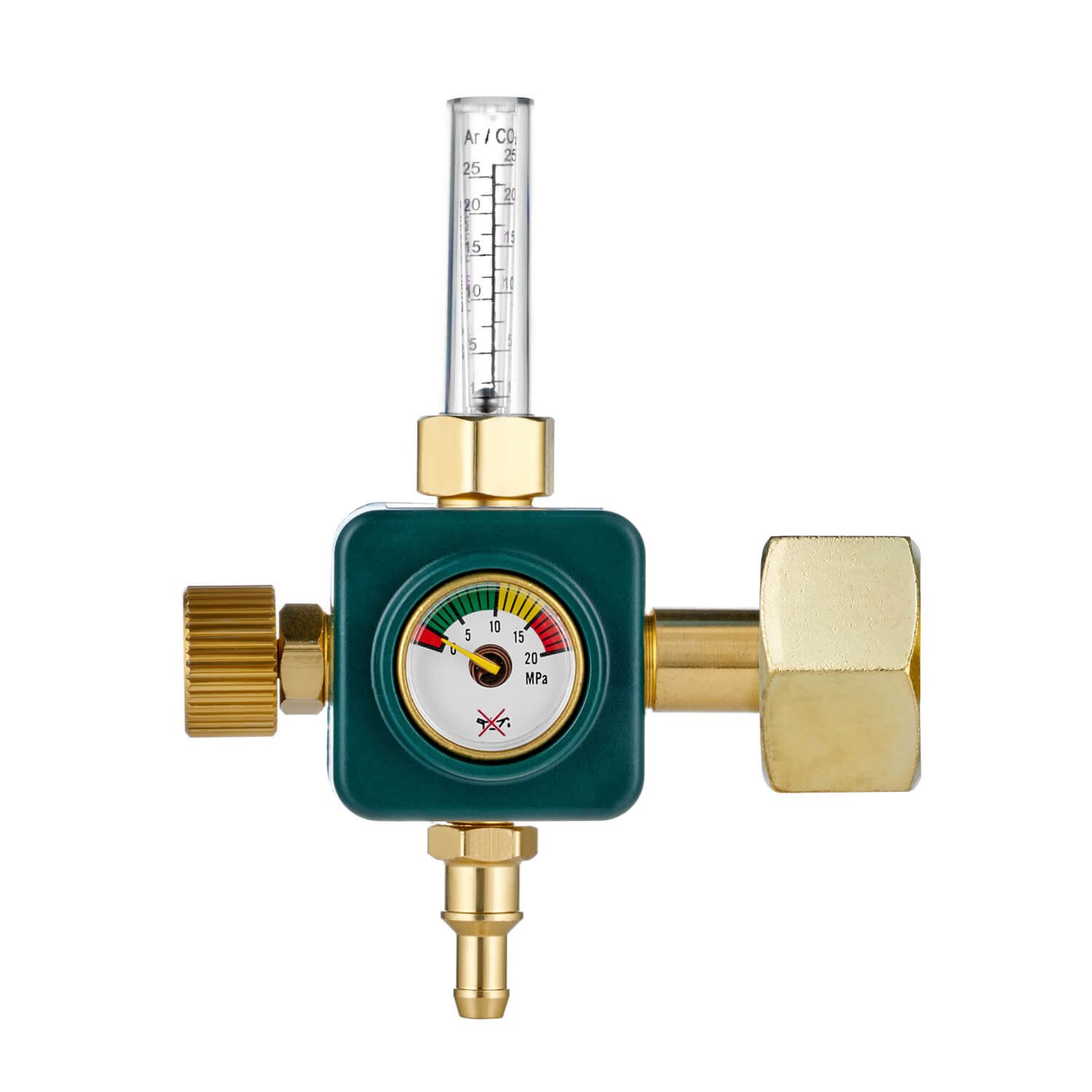 Колба ротаметра изготовлена из прочного пластика, которая имеет две шкалы Ar/CO2. На регулятор установлен эргономичный винт из металлопластика.