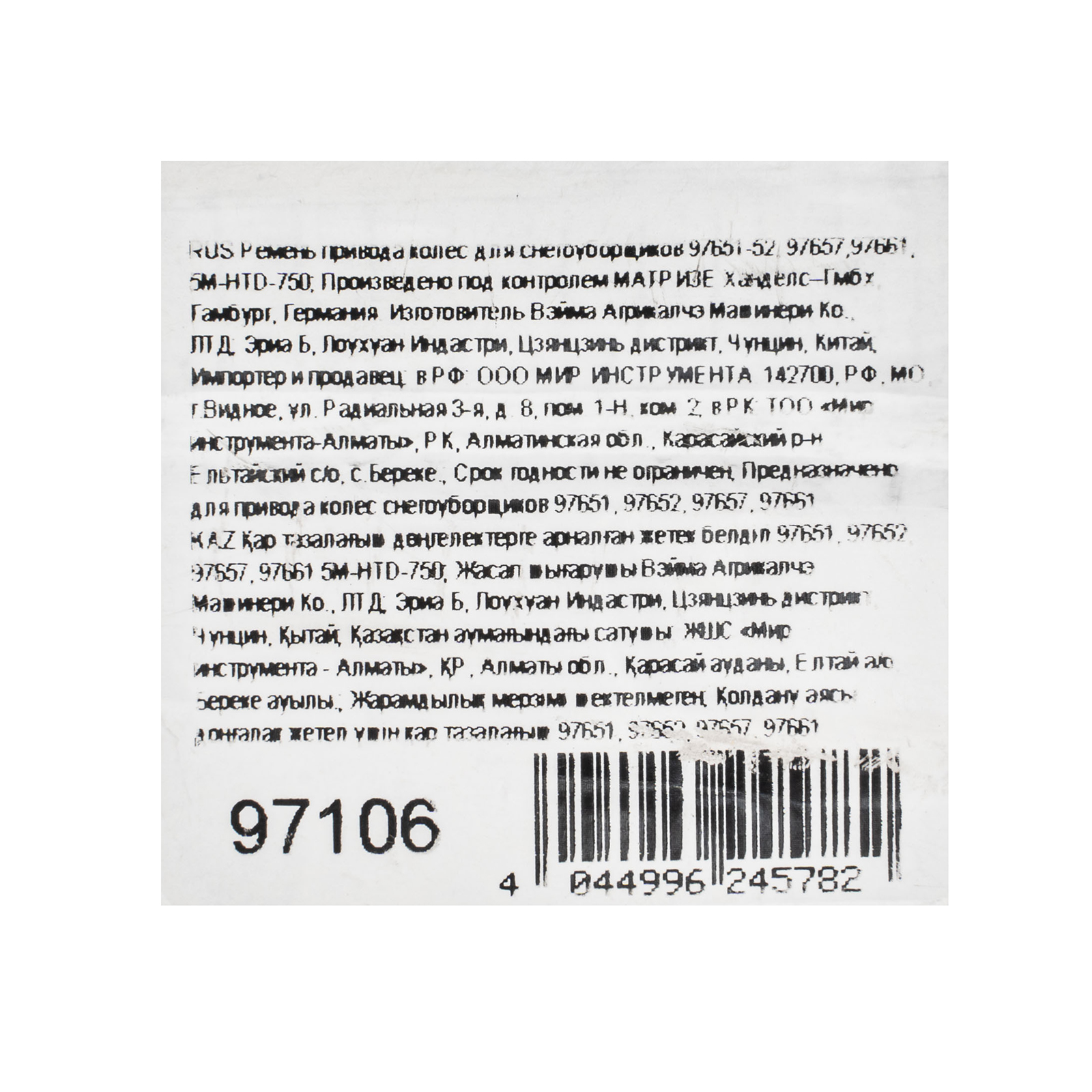 Ремень привода колес для снегоуборщиков 97651-52, 97657,97661, 5M-HTD-750 в Воронеже