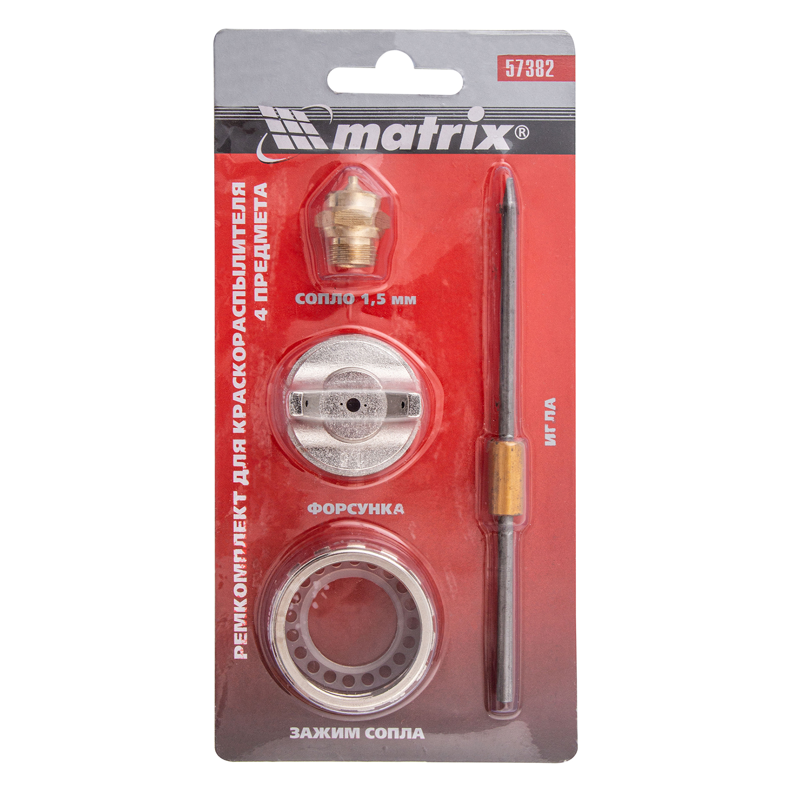 Ремкомплект для краскораспылителя 4 предмета : сопло 1.5 мм + игла + форсунка + зажим сопло Matrix в Воронеже