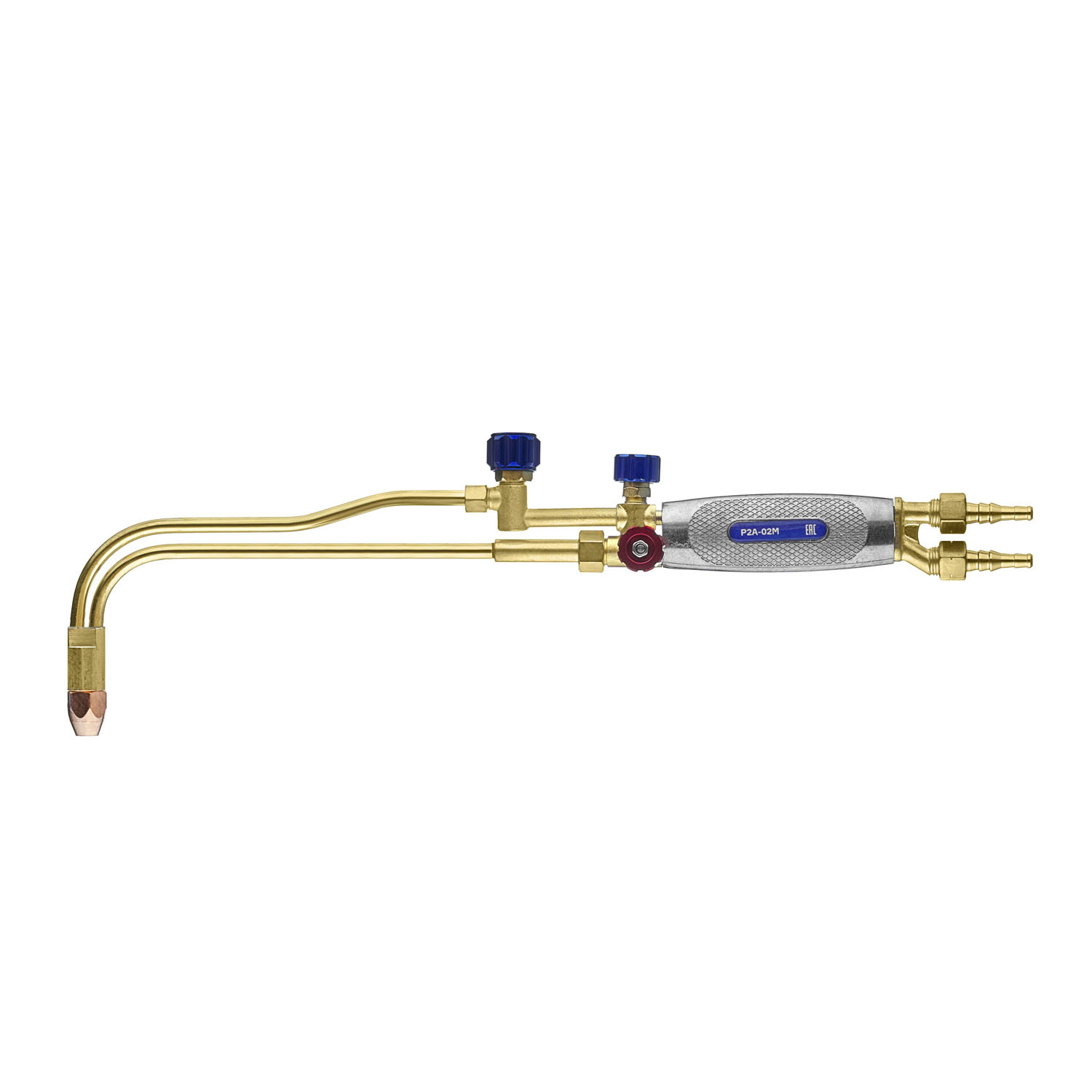 Ацетиленовый резак Р2А-02М используется для ручной разделительной резки листового и сортового металла из низкоуглеродистых сталей толщиной до 100 мм. На резаке установлена ручка из высокотемпературного штампованного пластика, выдерживающая температуру до 200°С, благодаря чему можно работать в тонких рукавицах.