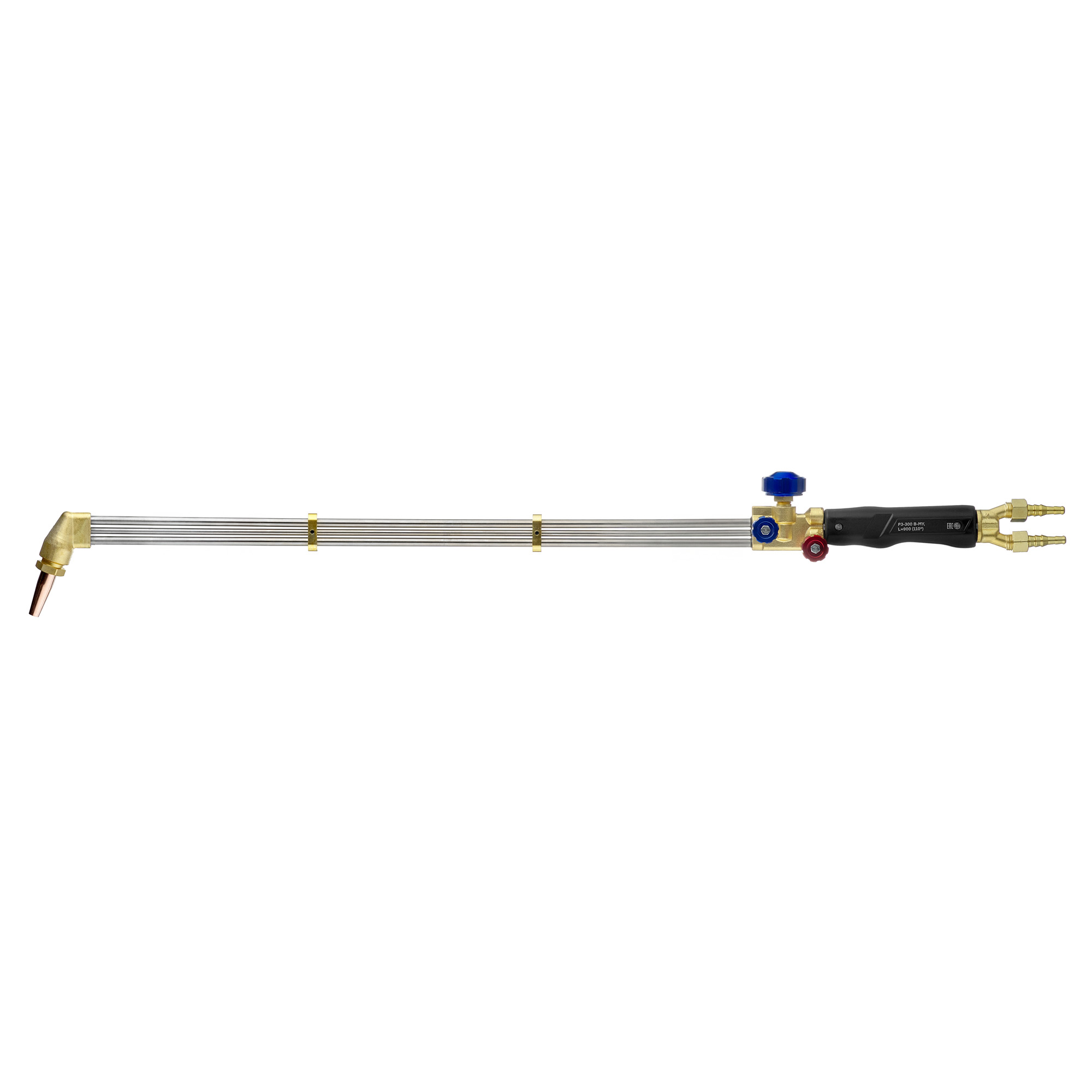 Универсальный резак Р3-300 В-МУ, L=900 (110°) внутрисоплового смешения газов предназначен для ручной кислородной резки листового и сортового металлопроката из низкоуглеродистых сталей толщиной до 300 мм.