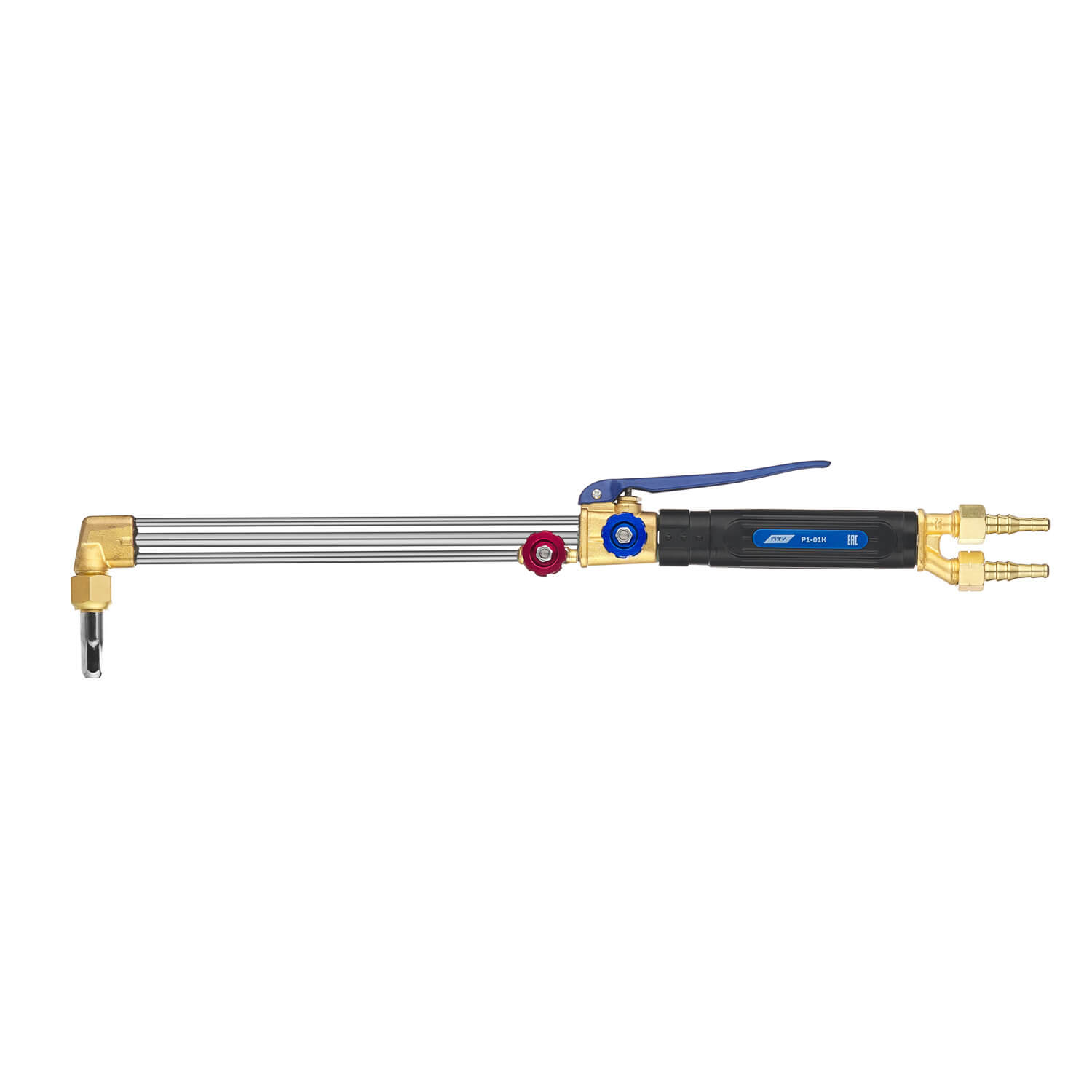 Отличительная особенность резака Р1-01К – клапан кислорода режущего (КР), который располагается сверху, что облегчает эксплуатацию резака.