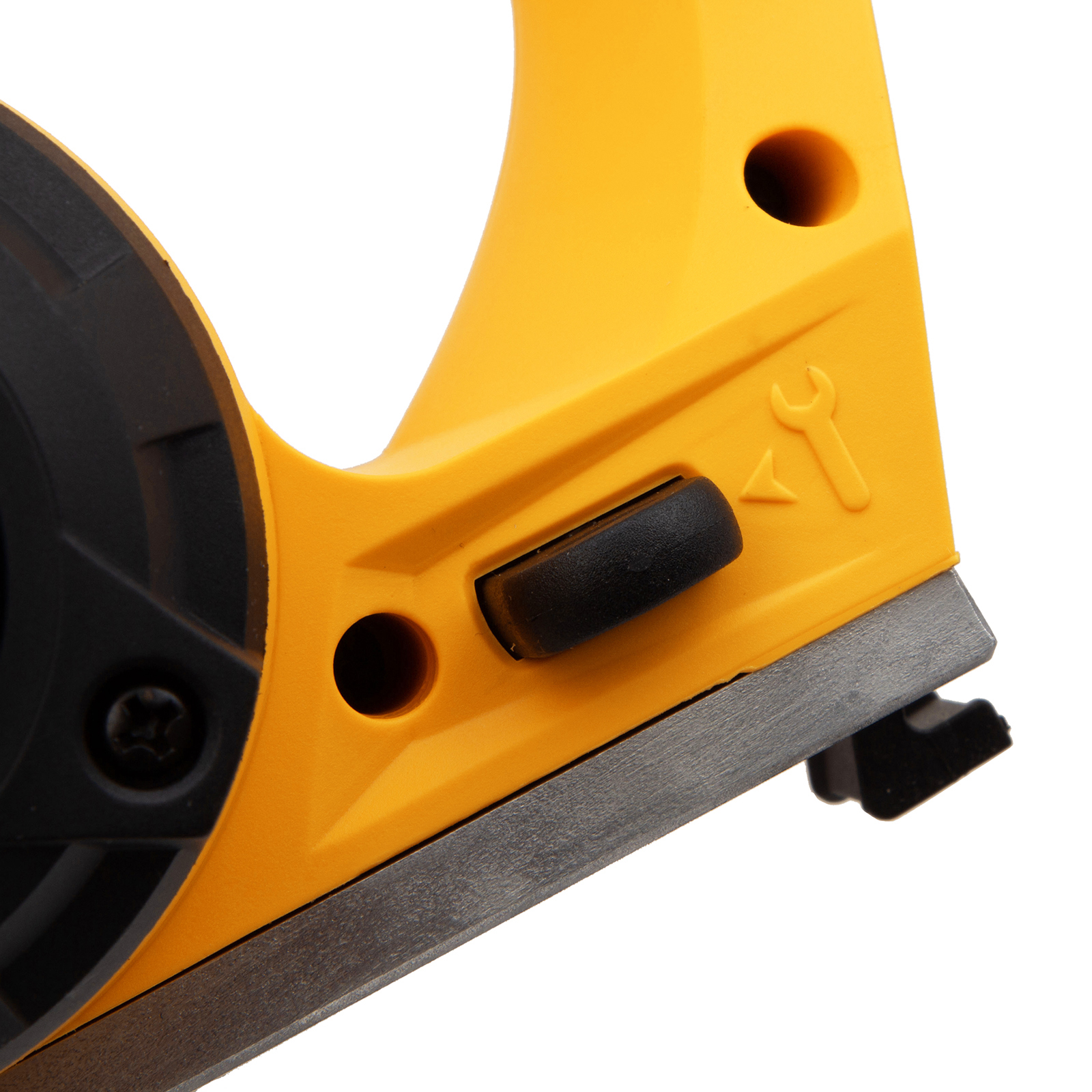 - Комфортная работа — направление выброса стружки переключается одним рычагом, параллельная направляющая и ограничитель глубины выборки четверти помогают точно вести рубанок.