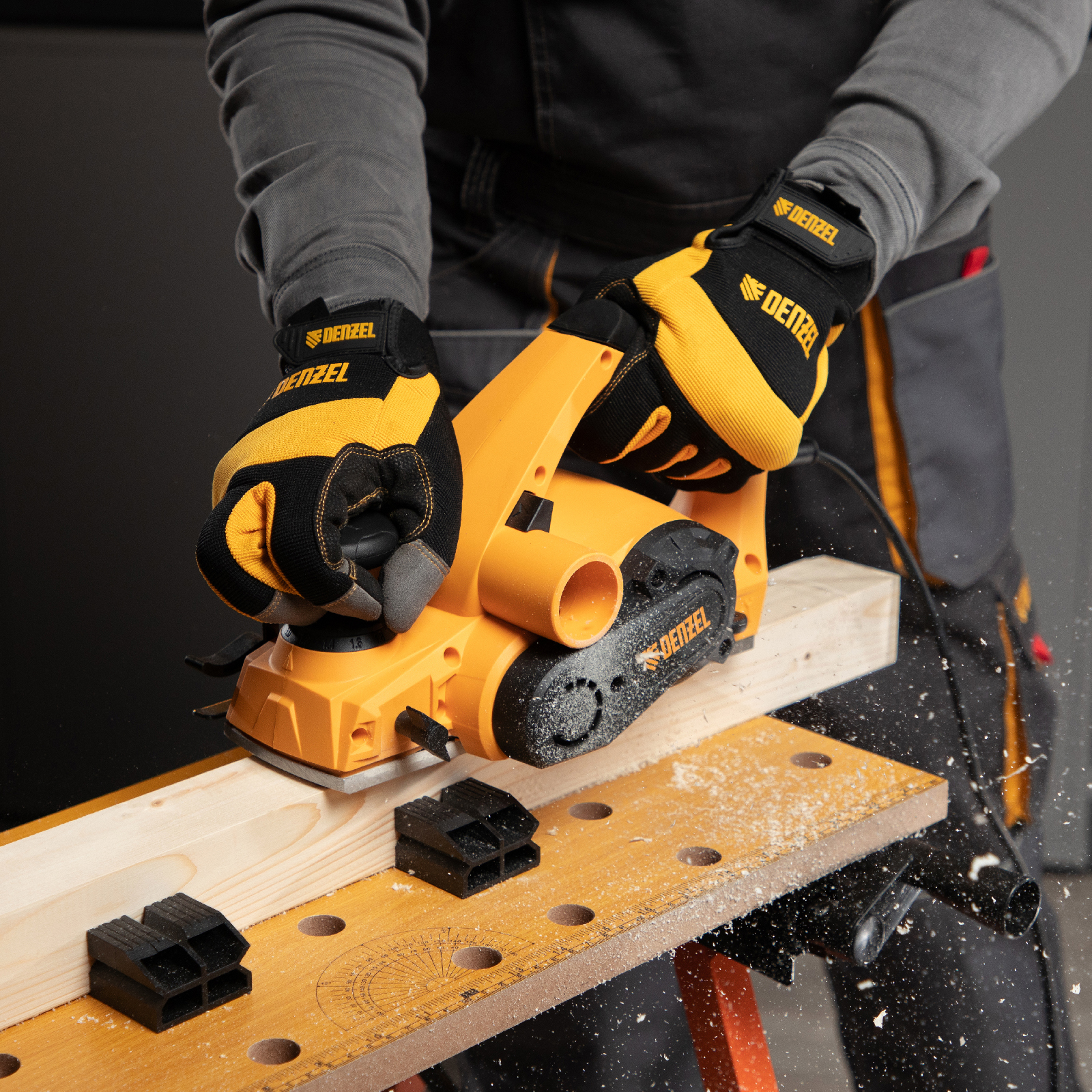 Электрический рубанок Denzel EP-82 27801 мощностью 720 Вт обеспечивает ширину обработки 82 мм и предназначен для строгания плоских деревянных поверхностей, снятия фасок, выборки четверти. Частота вращения барабана составляет 16000 об/мин, выборка четверти производится на глубину до 18 мм, что позволяет эффективно решать поставленные задачи. Инструмент подходит для бытового использования.
