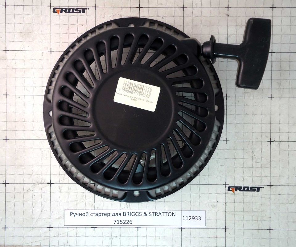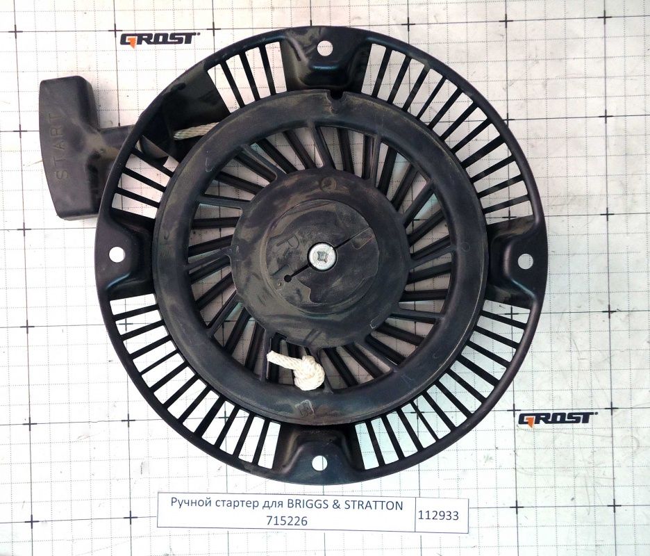 Стартер для ручного запуска бензинового двигателя BRIGGS & STRATTON 715226 Механизм запуска бензинового двигателя. Внешний диаметр 205 мм, крепежные отверстия 6 мм, межцентровые равстояния между крепежными отверстиями по окружности 132 мм (противоположных 185 мм).
