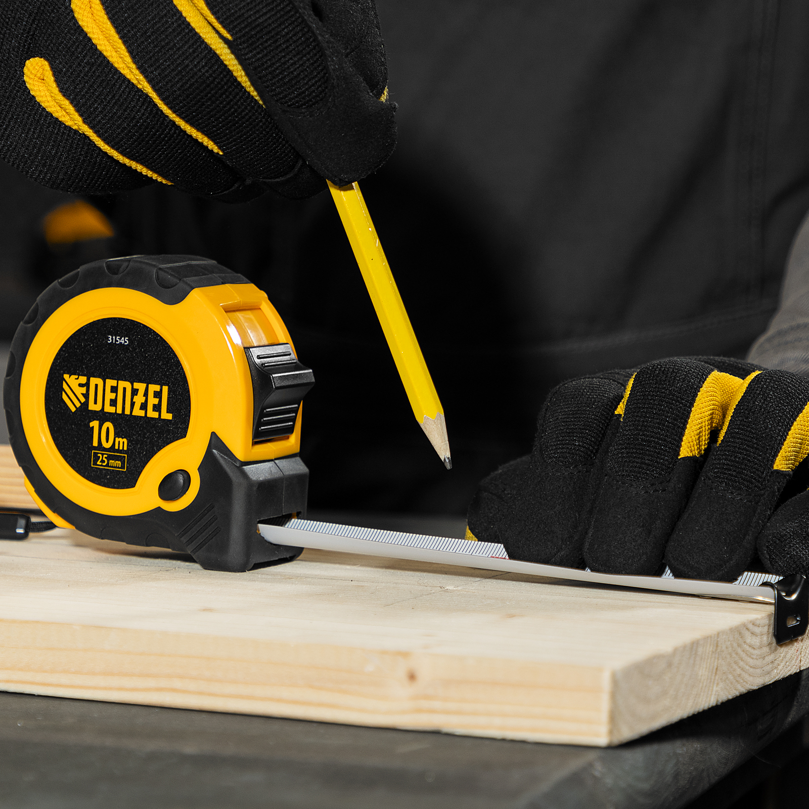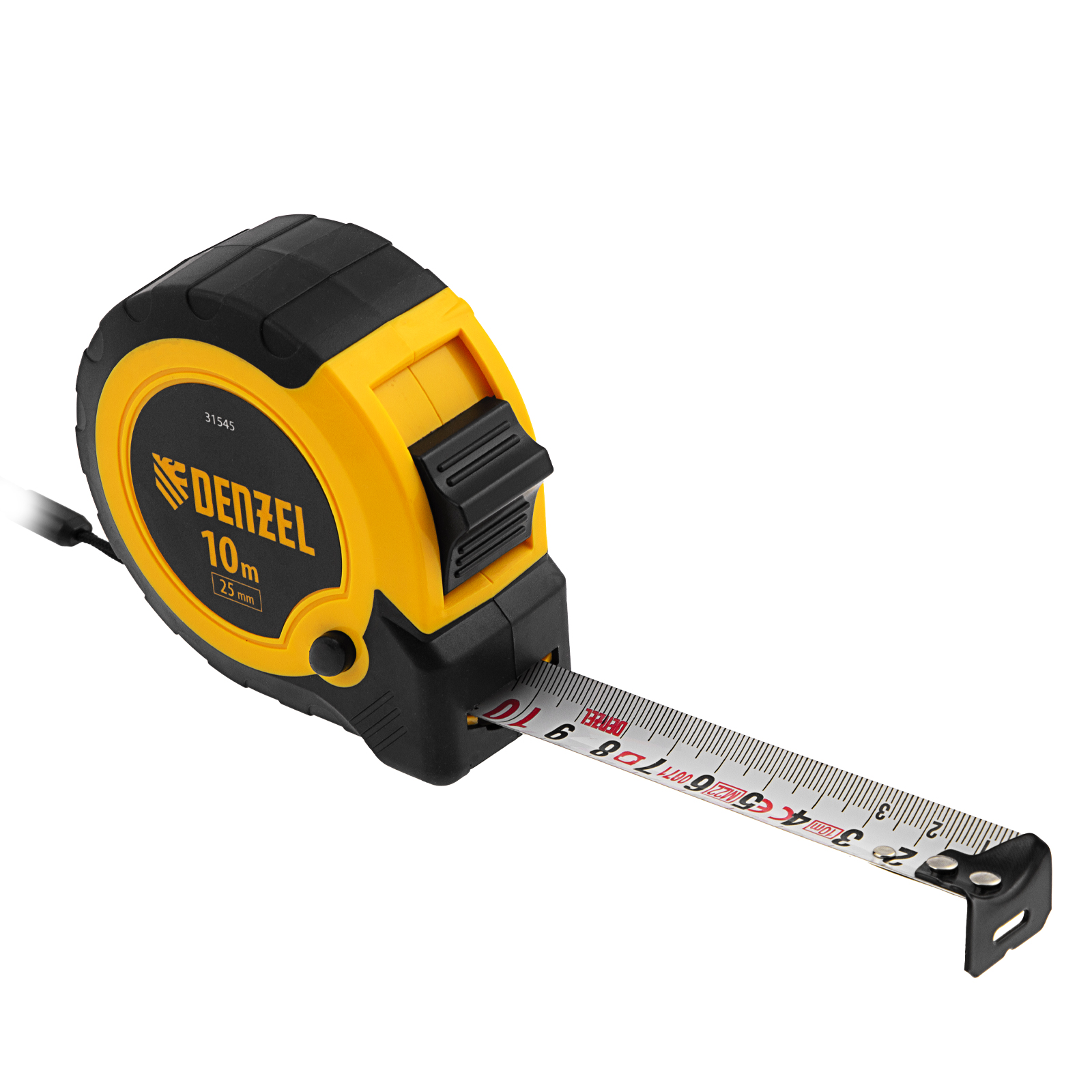 Рулетка 10м х 25мм, двухкомп. корпус, кнопка-пауза Denzel в Воронеже