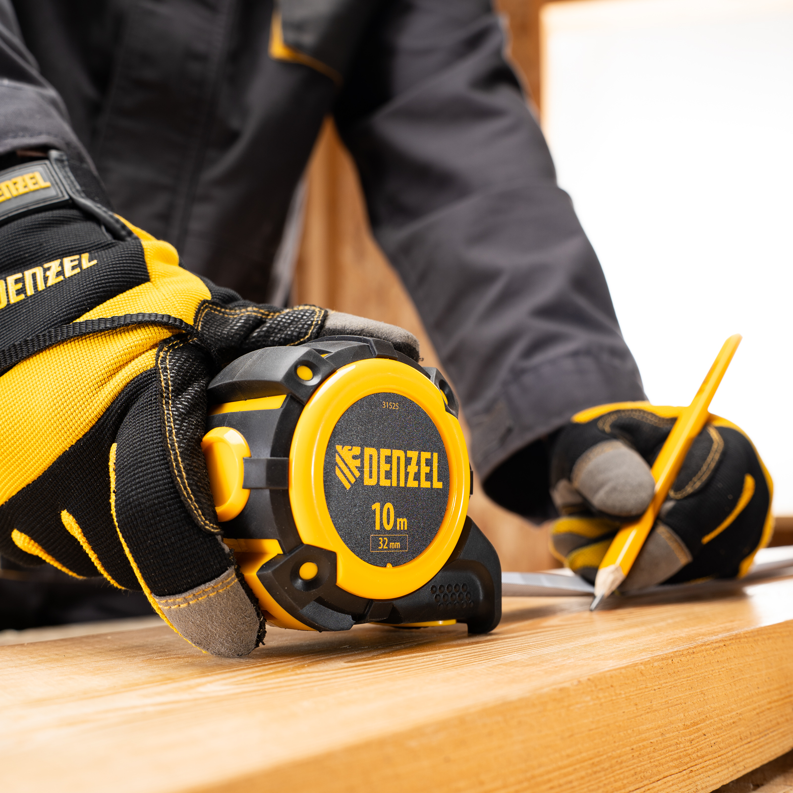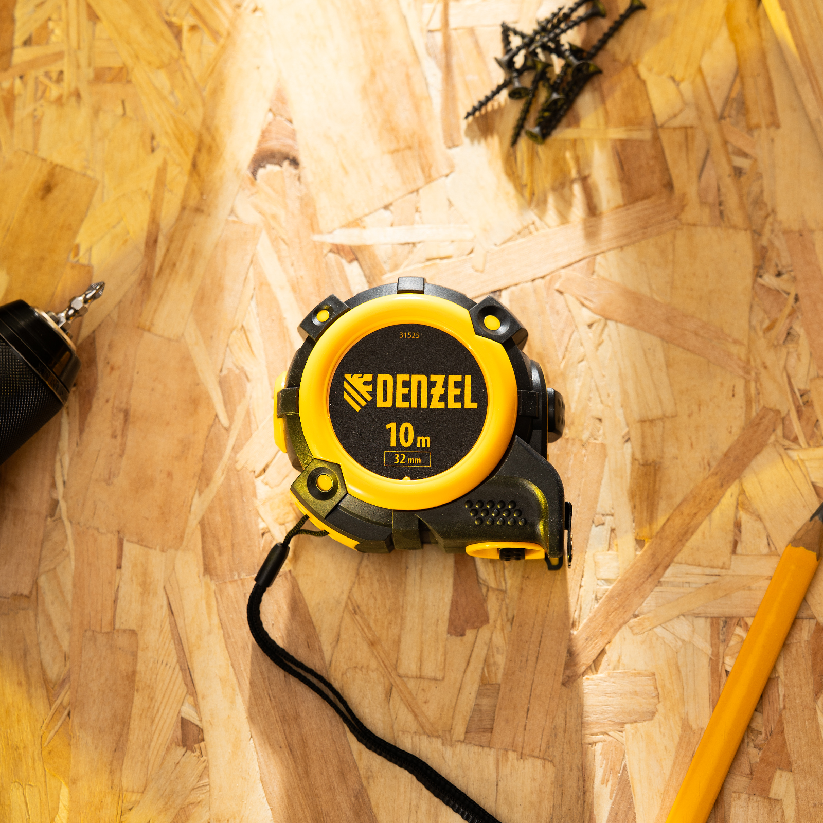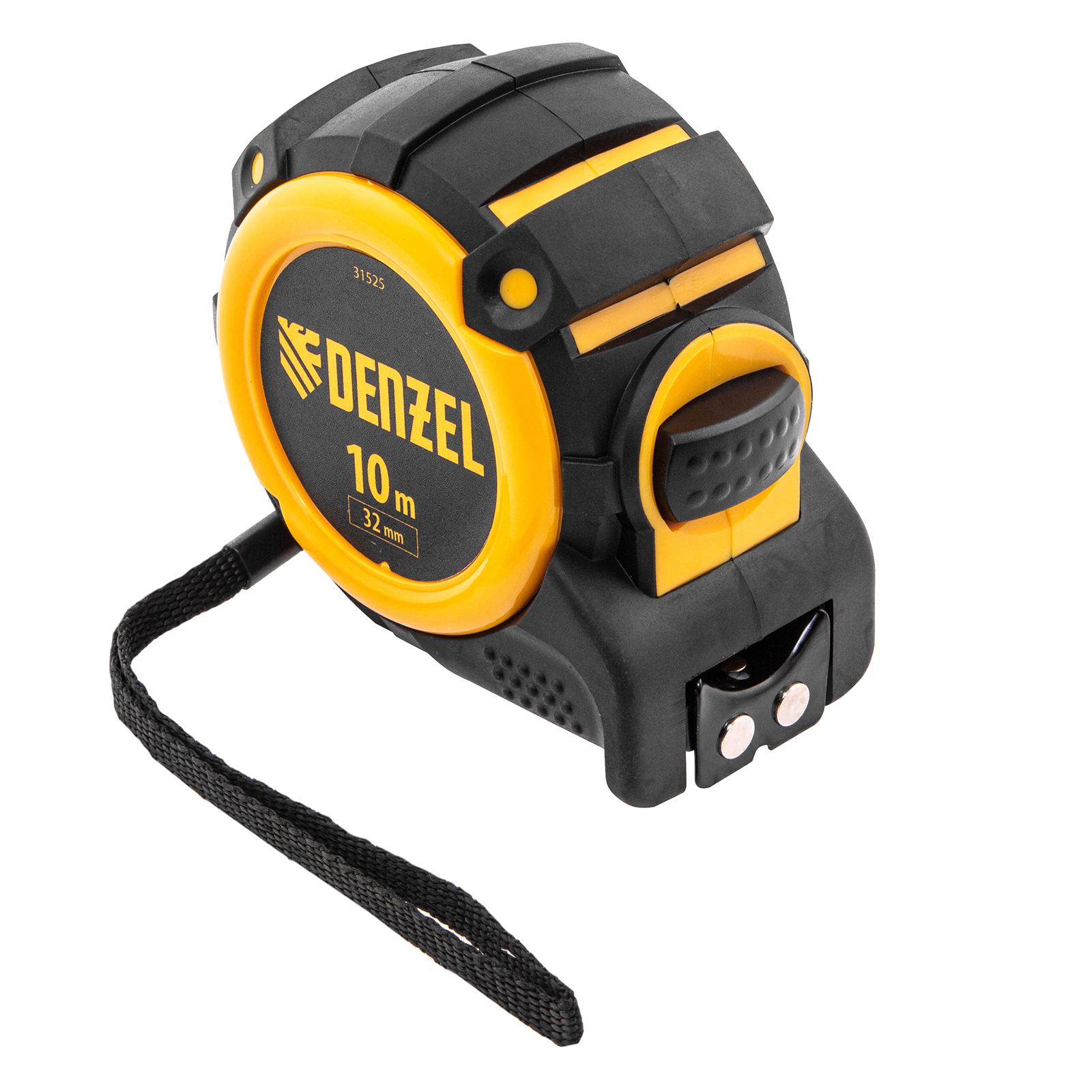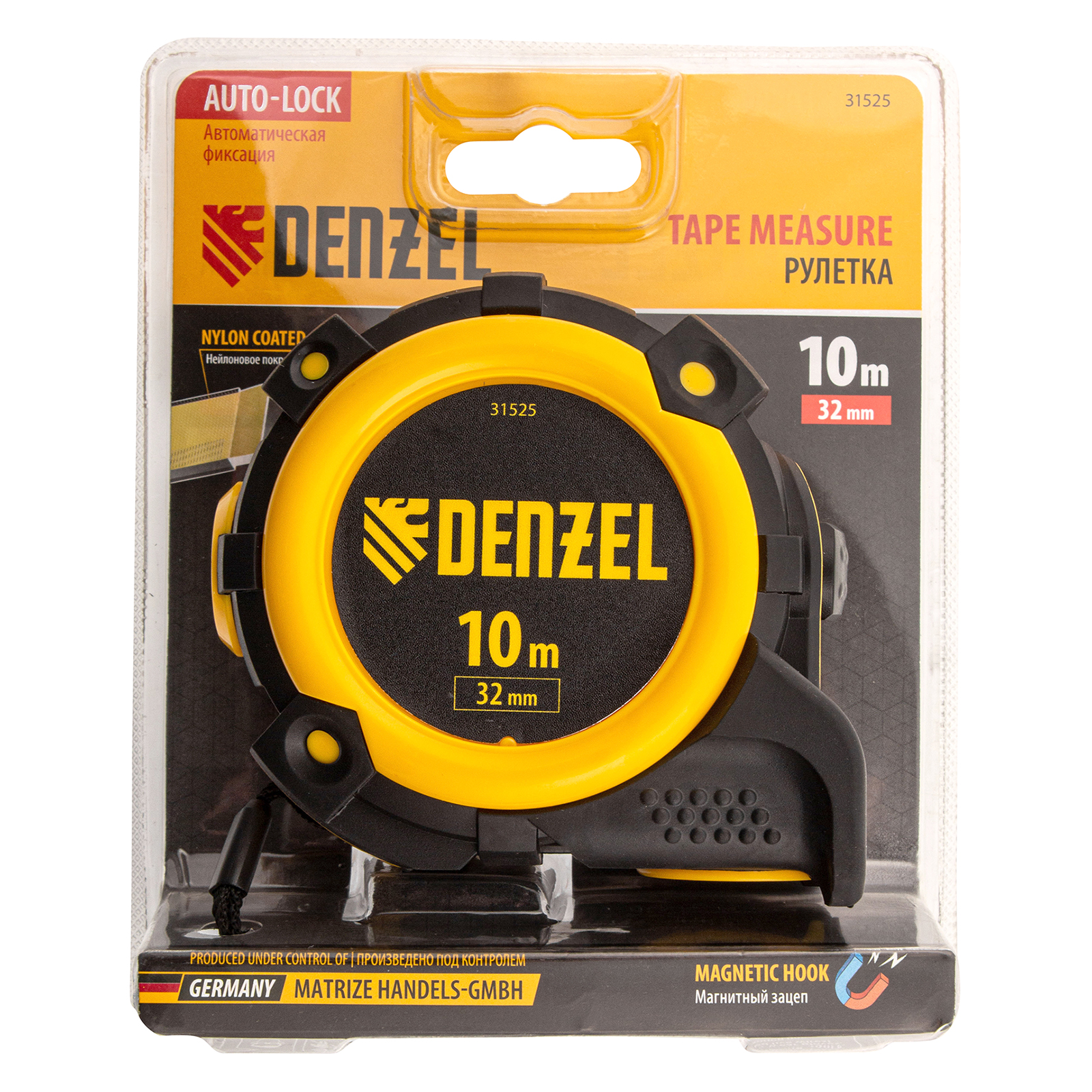 Рулетка 10м х 32мм, автоматич. фиксац., нейлон. покрытие, магнит. зацеп, двухстор. разметка Denzel в Воронеже