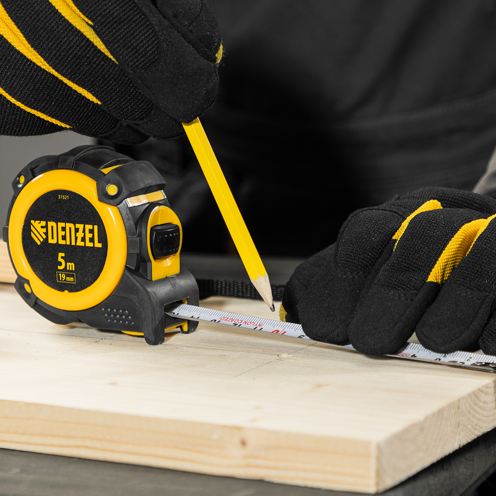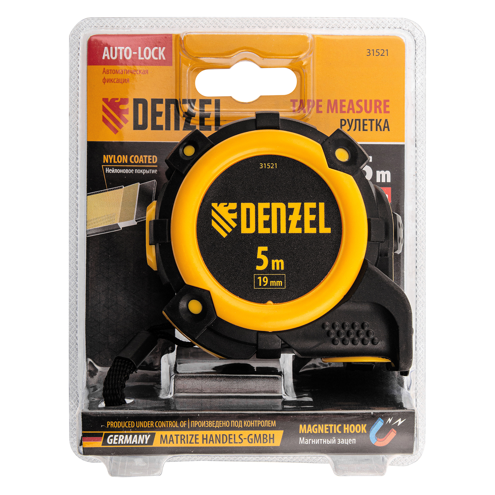 Рулетка 5м х 19мм, автоматич. фиксац., нейлон. покрытие, магнит. зацеп, двухстор. разметка Denzel в Воронеже