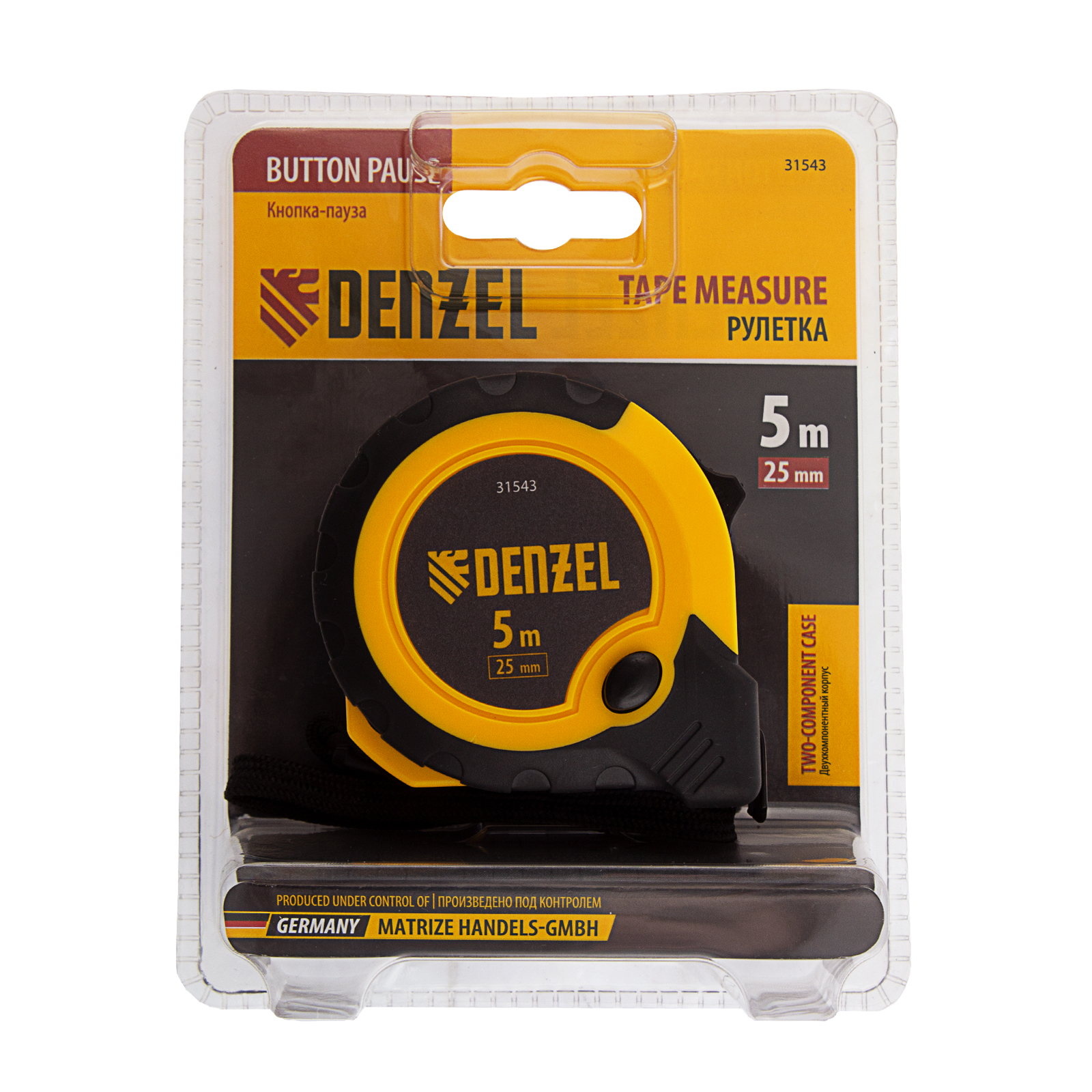 Рулетка 5м х 25мм, двухкомп. корпус, кнопка-пауза Denzel в Воронеже