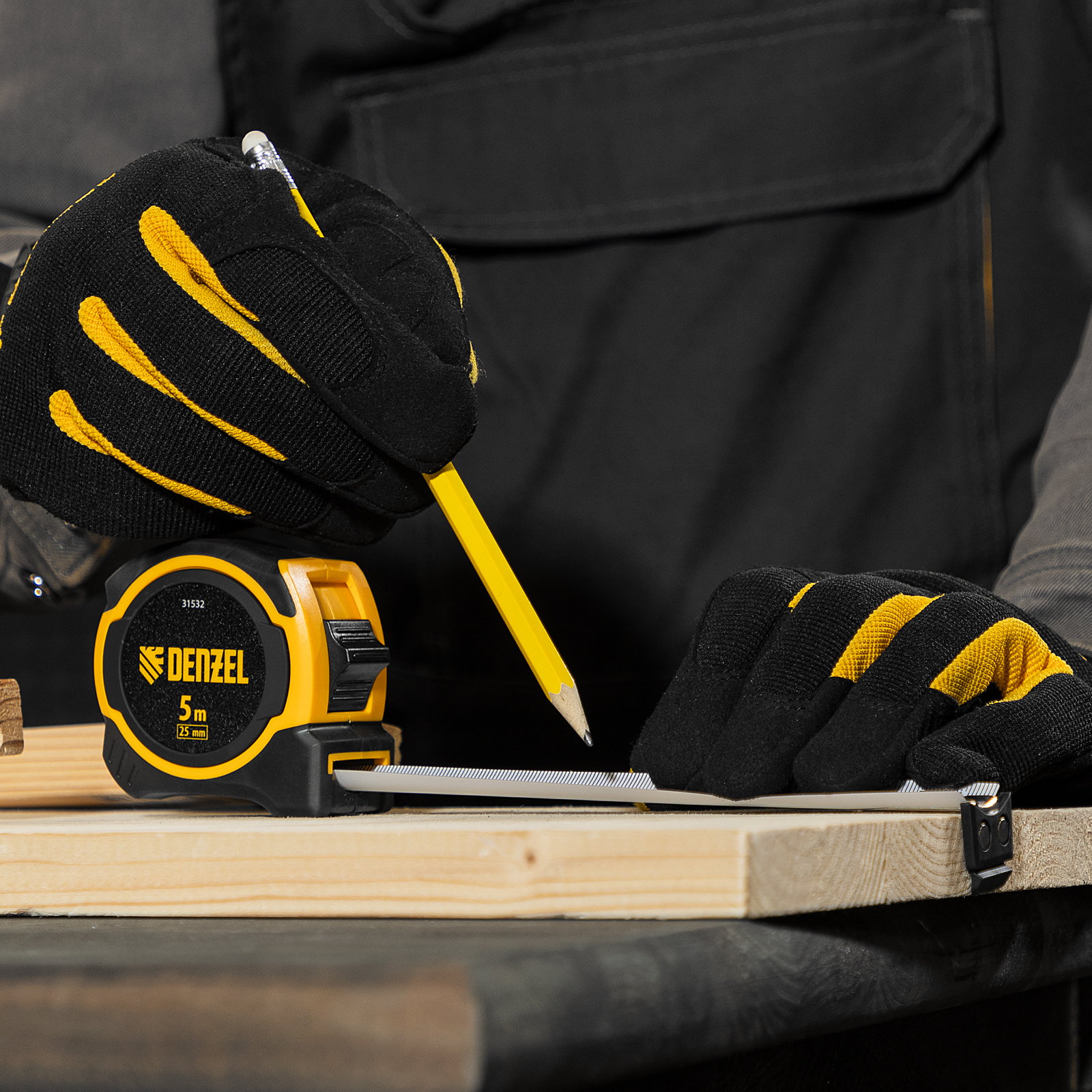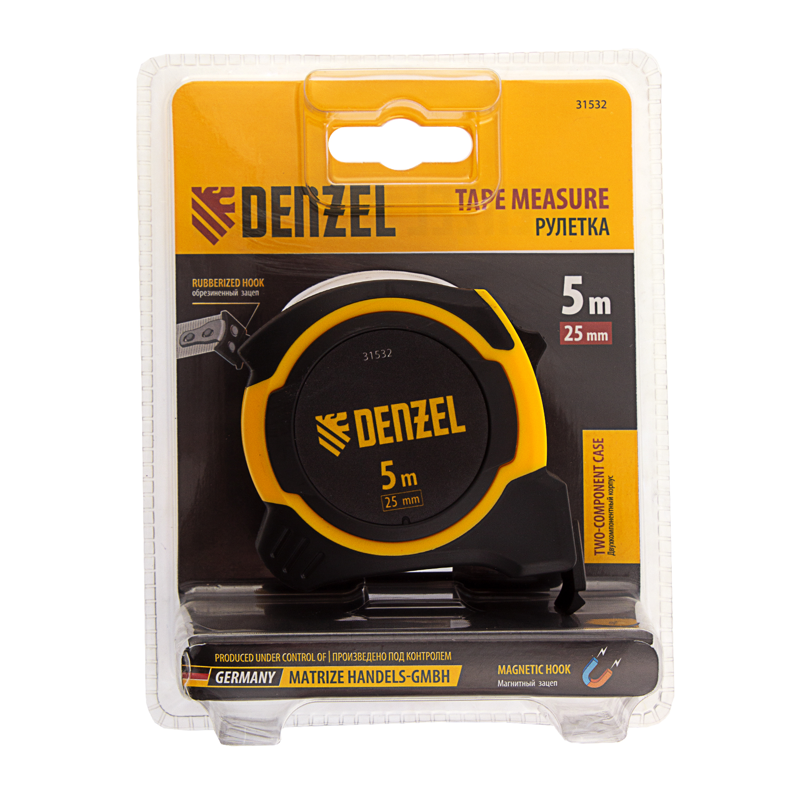 Рулетка 5м х 25мм, двухкомп. корпус, магнитный обрезиненный зацеп Denzel в Воронеже