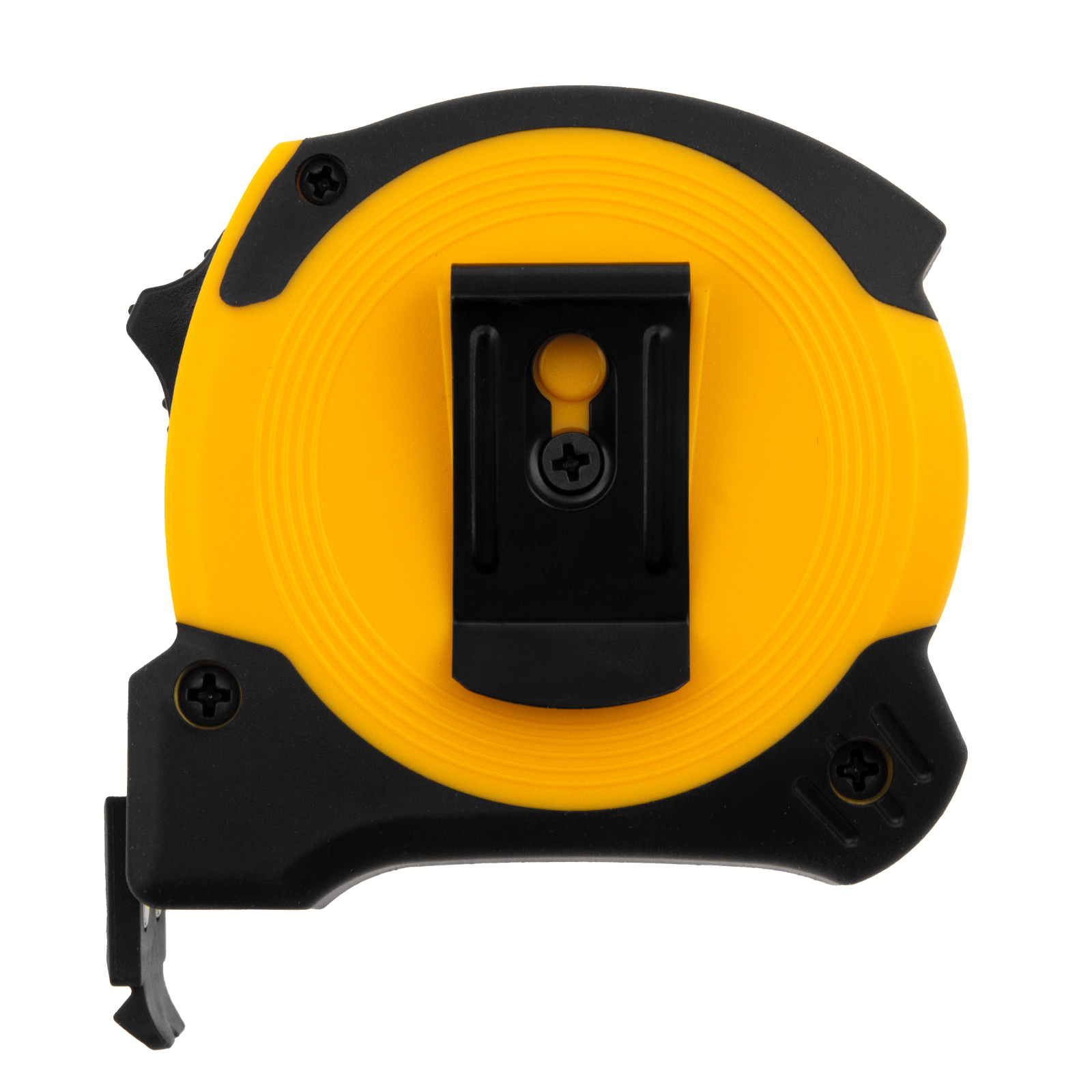 - Удобная фиксация на ремне — рулетка дополнена поясным зажимом.