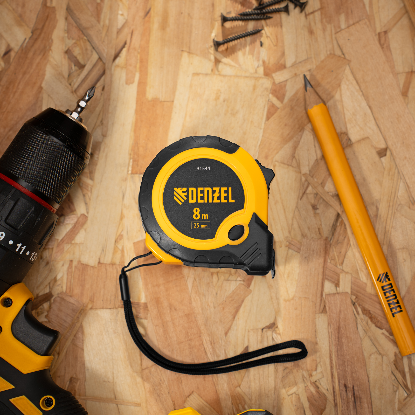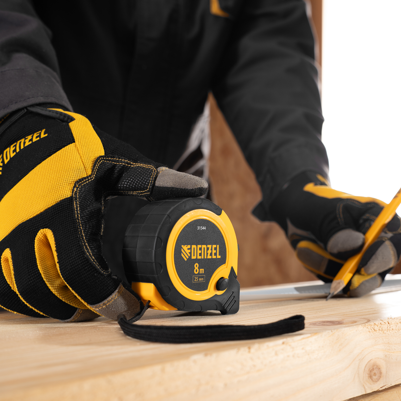 Рулетка 8м х 25мм, двухкомп. корпус, кнопка-пауза Denzel в Воронеже