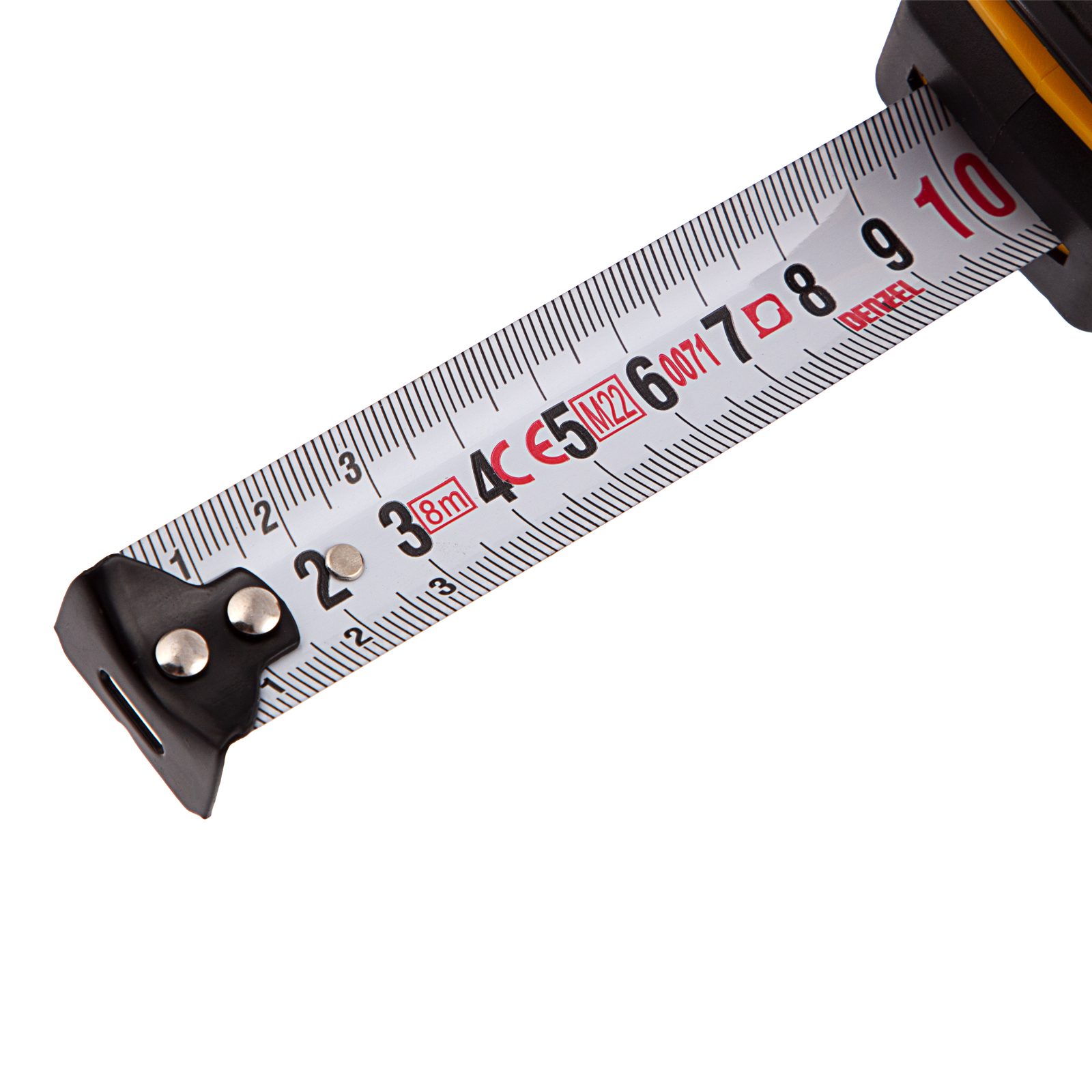 Рулетка Denzel 31544 в двухкомпонентном корпусе, с кнопкой-паузой, с полотном шириной 25 мм и длиной 8 м, используется для измерения расстояний и размеров предметов. Удобна для работы в труднодоступных местах. Стальная лента с эмалевым покрытием и защитной пластиной в месте крепления зацепа рассчитана на долгий срок службы. Рулетка будет полезна во время строительства и ремонта, а также пригодится в быту.