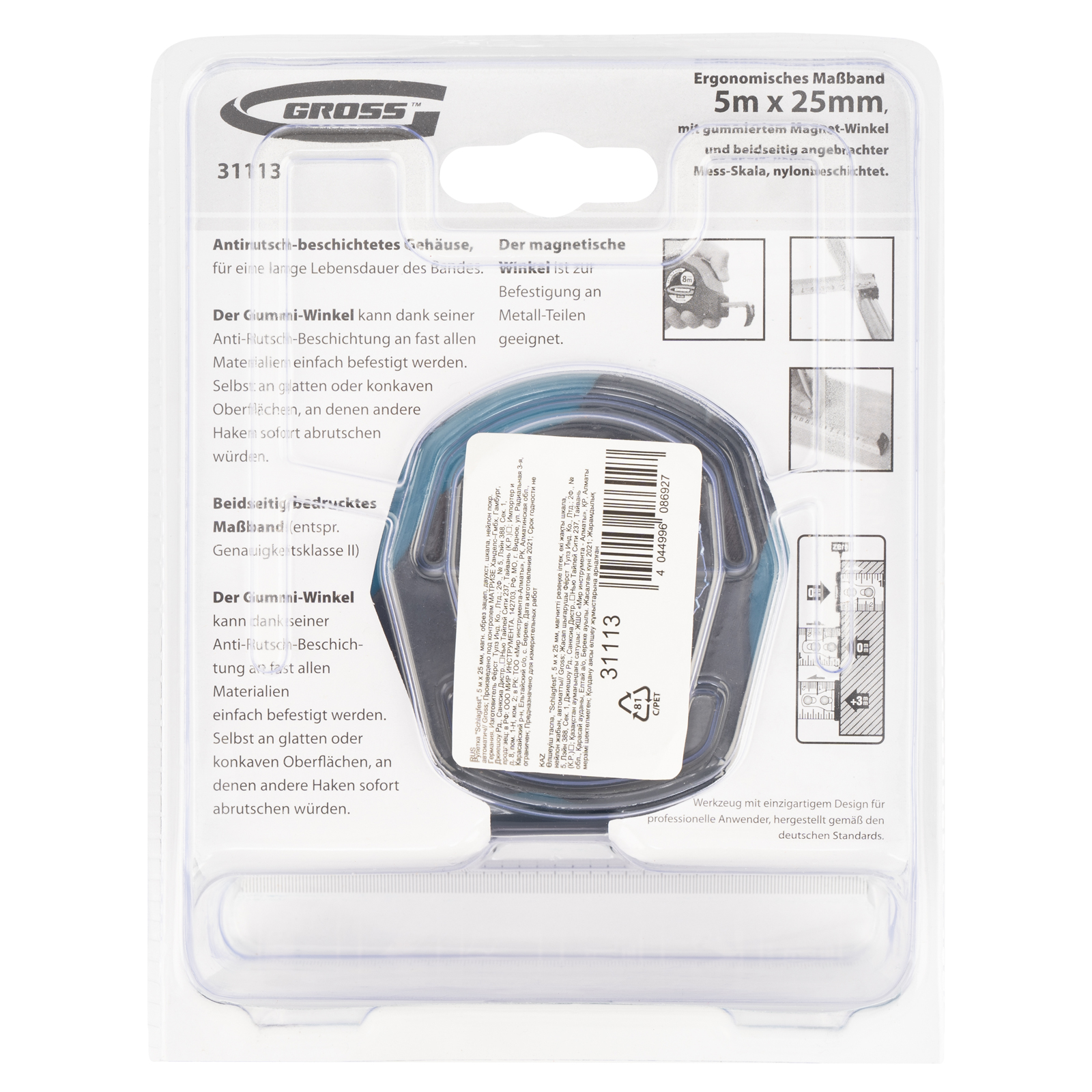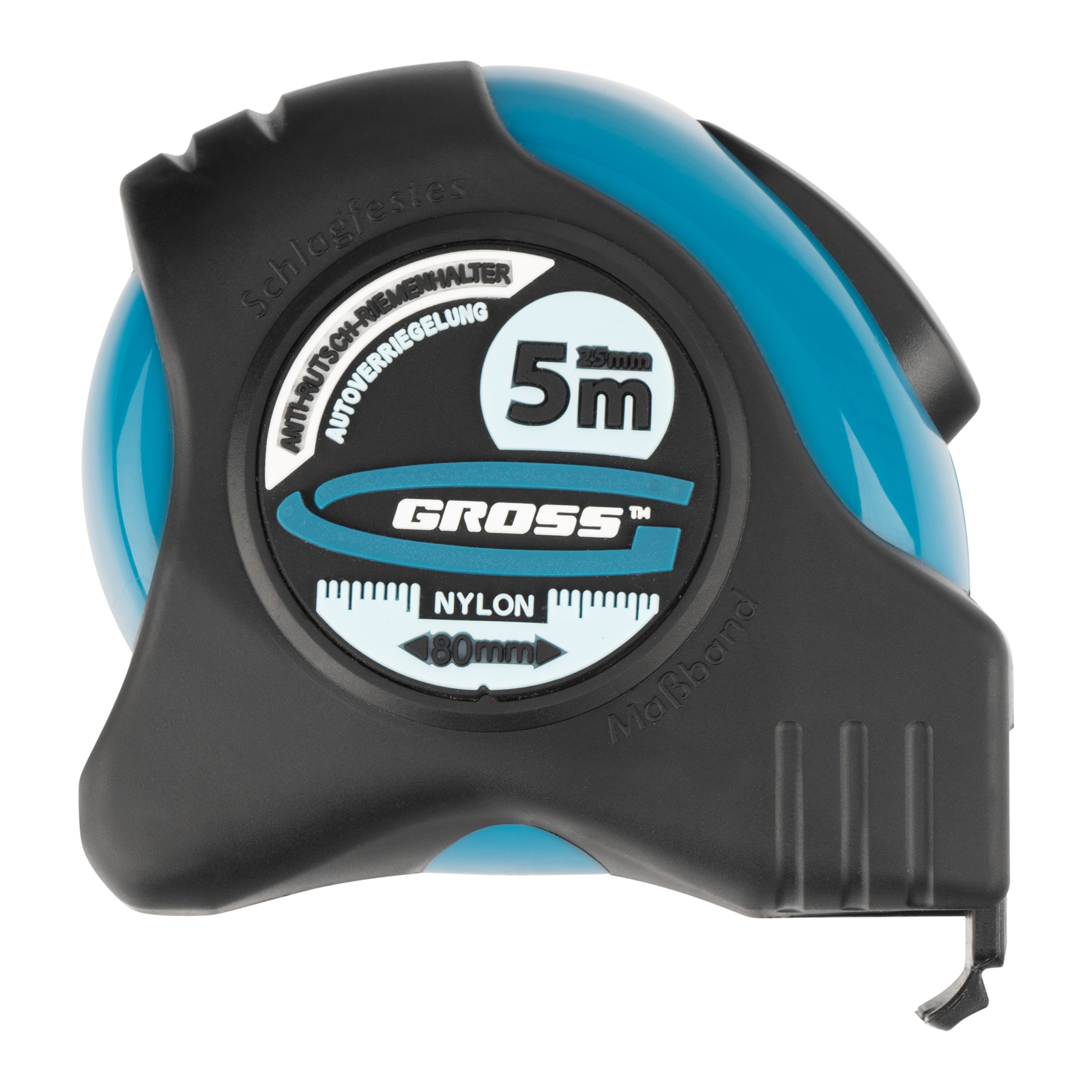 Рулетка "Schlagfest",5 м x 25 мм,магнитный обрезиненный зацеп,двусторонняя шкала,Нейлоновое покрытие,автоматическая фиксация Gross в Воронеже