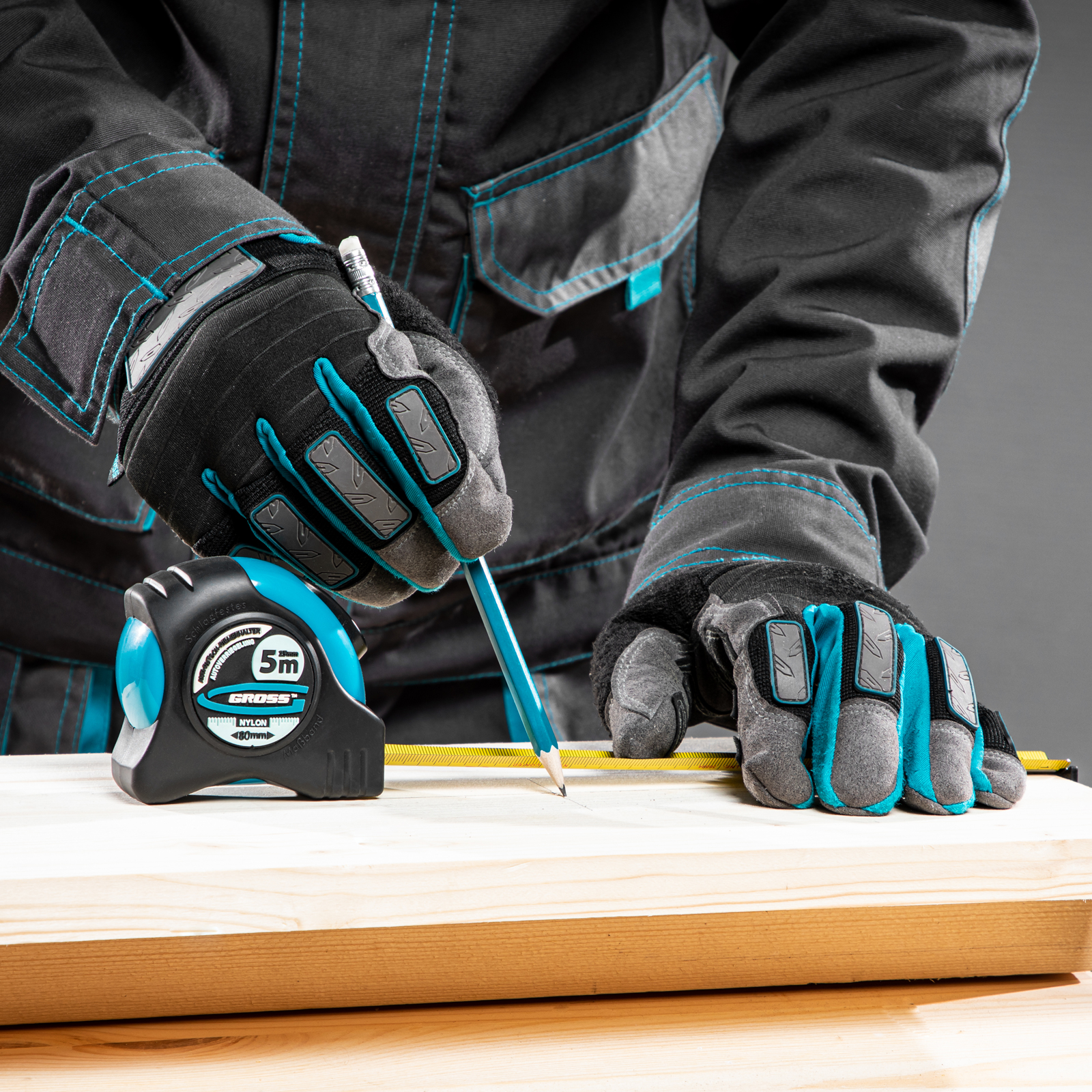 Рулетка Gross «Schlagfest» 31113 с магнитным обрезиненным зацепом, двухсторонней шкалой и функцией автоматической фиксации полотна длиной 5 м и шириной 25 мм, с нейлоновым покрытием, позволяет определять размеры предметов, вычислять площадь помещения и проводить другие измерительные работы. Магнитный обрезиненный зацеп надежно фиксируется на скользких и металлических поверхностях со сложной формой. Широкое упругое полотно облегчает работу в труднодоступных местах. Карманная рулетка пригодится на строительной площадке и в быту.