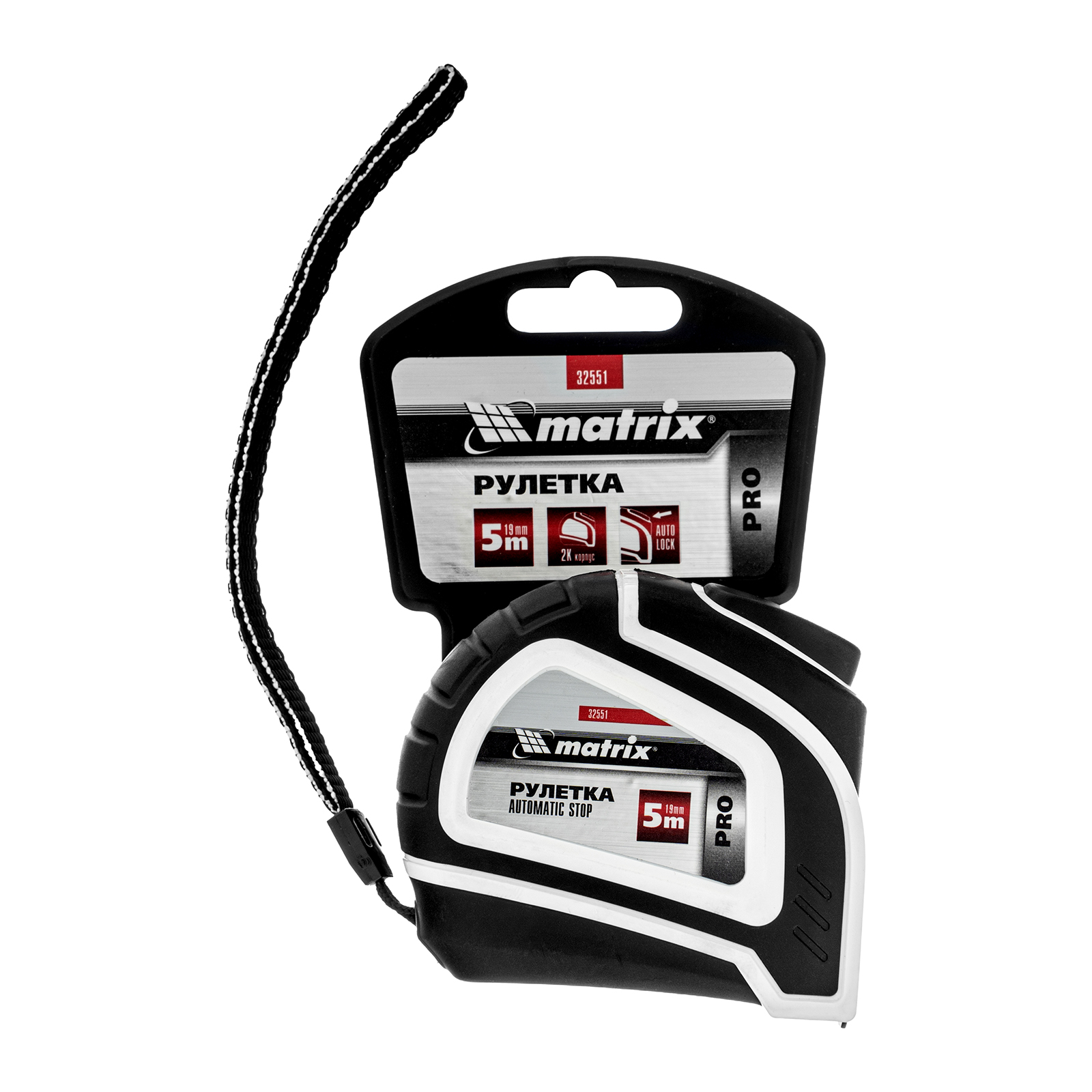 Рулетка Autostop,5 м х 19 мм,двухкомпонентный корпус,автоматическая фиксация,Pro Matrix в Воронеже