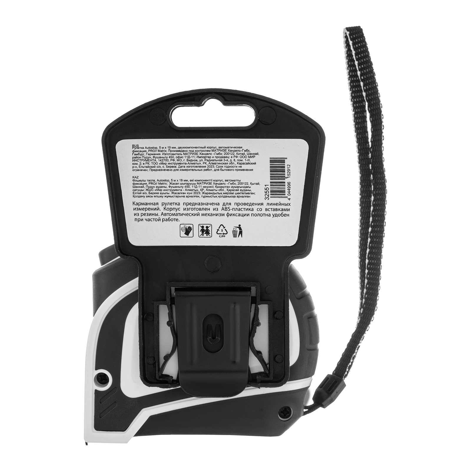 - Комфортная транспортировка — нейлоновый ремешок позволяет повесить рулетку на запястье, при помощи зажима на корпусе инструмент можно закрепить на поясном ремне.