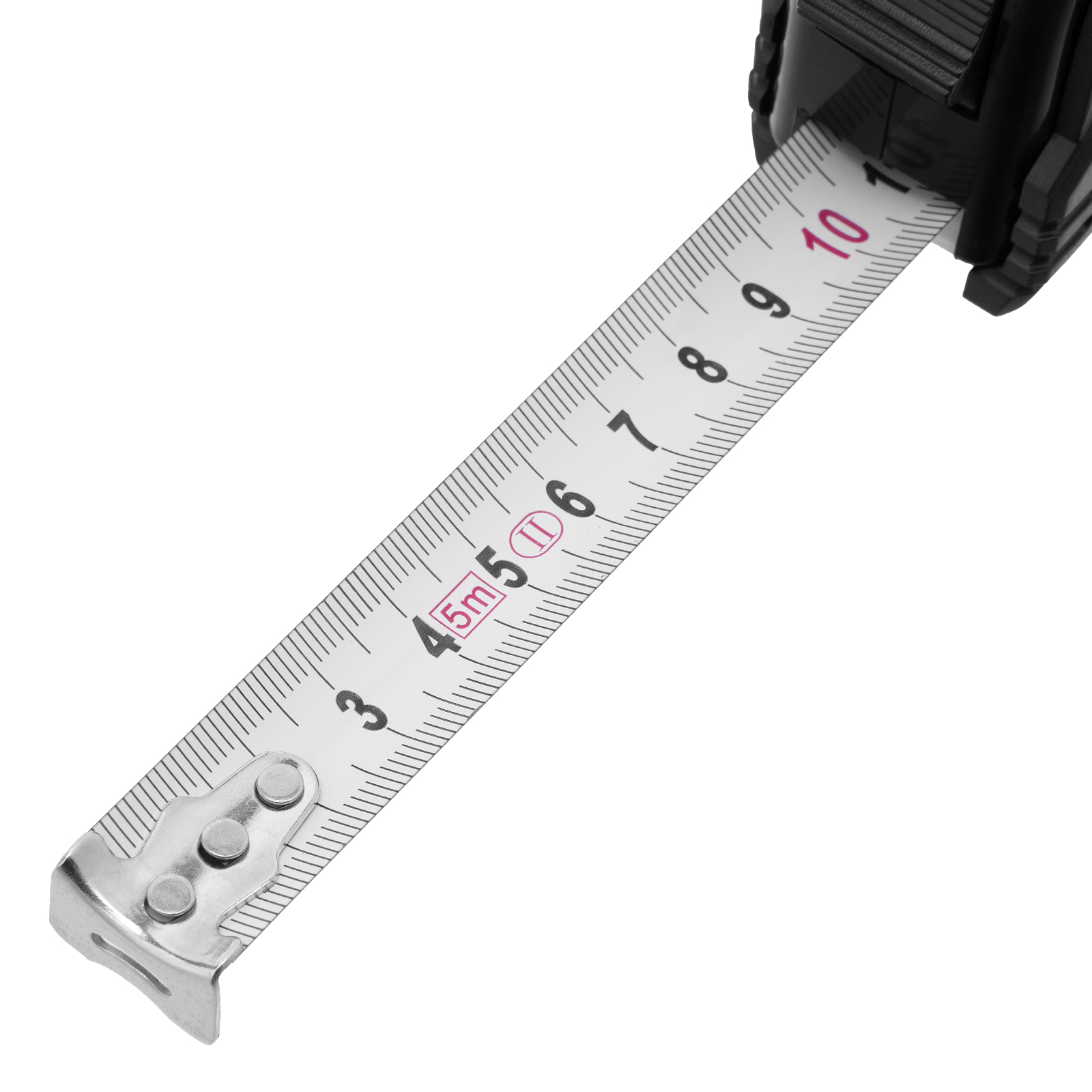 Рулетка Matrix Black 31014 с измерительным полотном длиной 5 м и шириной 19 мм, в обрезиненном корпусе, будет полезна как строителю, так и домашнему мастеру. Используется для определения размеров и расстояний, имеет цену деления 1 мм и класс точности 2. Корпус инструмента защищен резиновым кожухом, что уменьшает риск поломки в результате случайного падения или удара. Зацеп надежно закреплен на ленте тремя заклепками, поэтому он не отвалится даже после длительного использования.