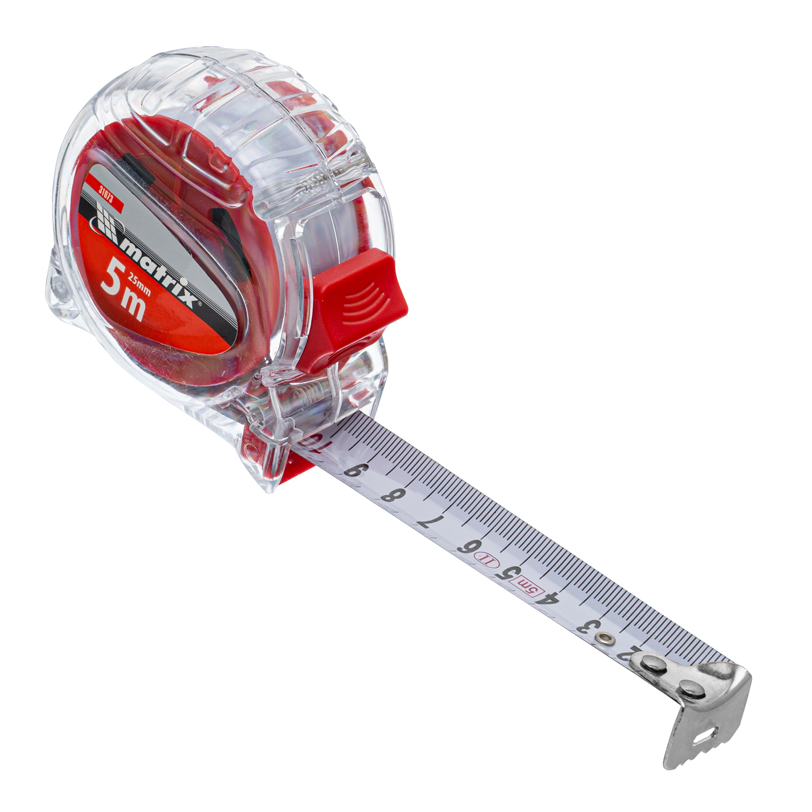 Рулетка Matrix Crystal 31073 с лентой длиной 5 м и шириной 25 мм, в корпусе из поликарбоната, — измерительный инструмент, использующийся как в профессиональной сфере, так и в быту. Отличительной особенностью модели является корпус из высокопрочного поликарбоната, характеризующийся повышенной устойчивостью к механическим повреждениям.