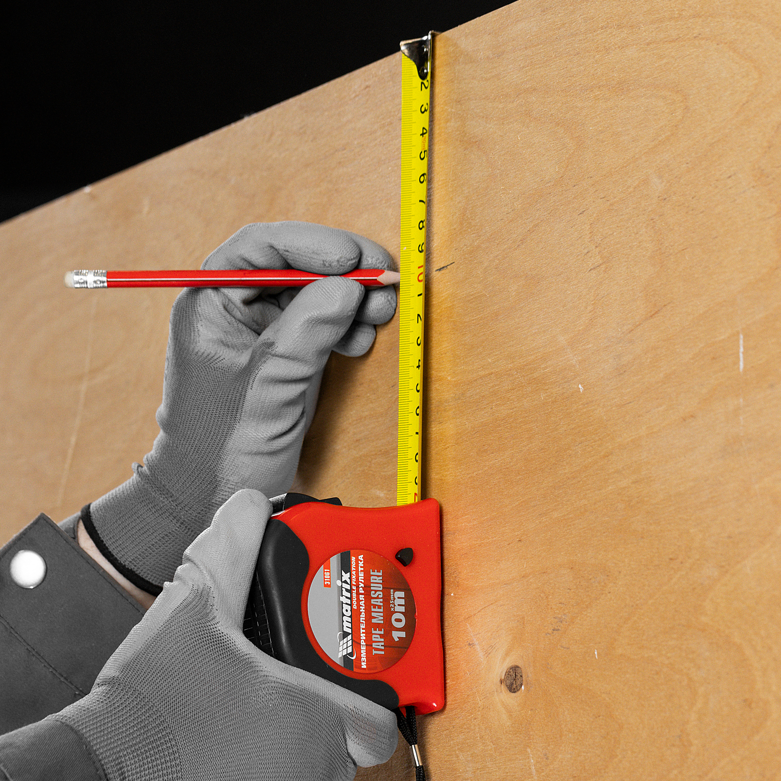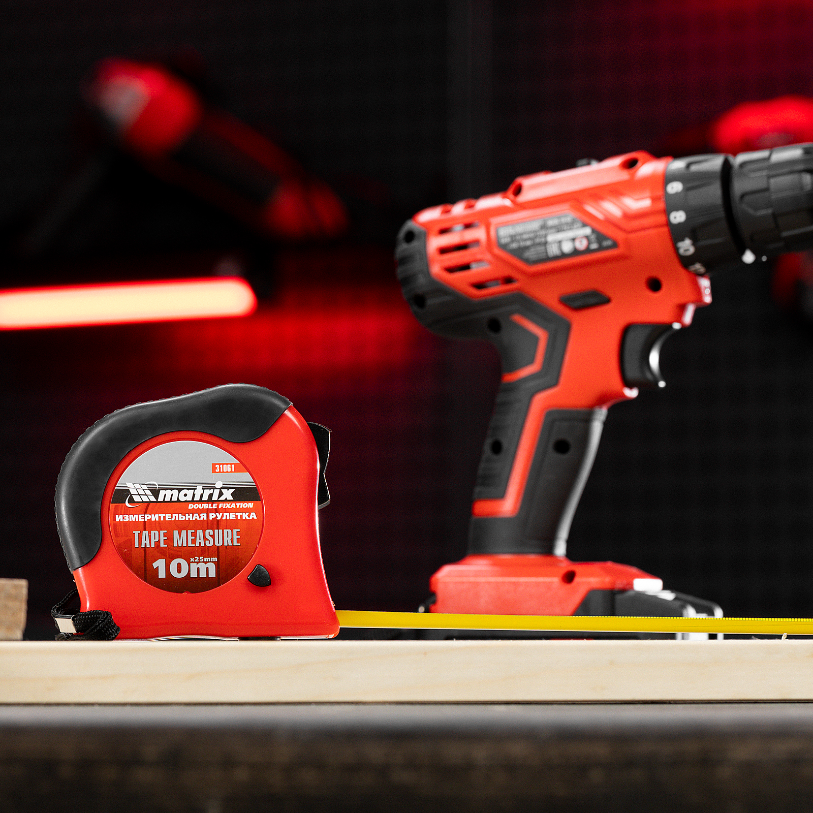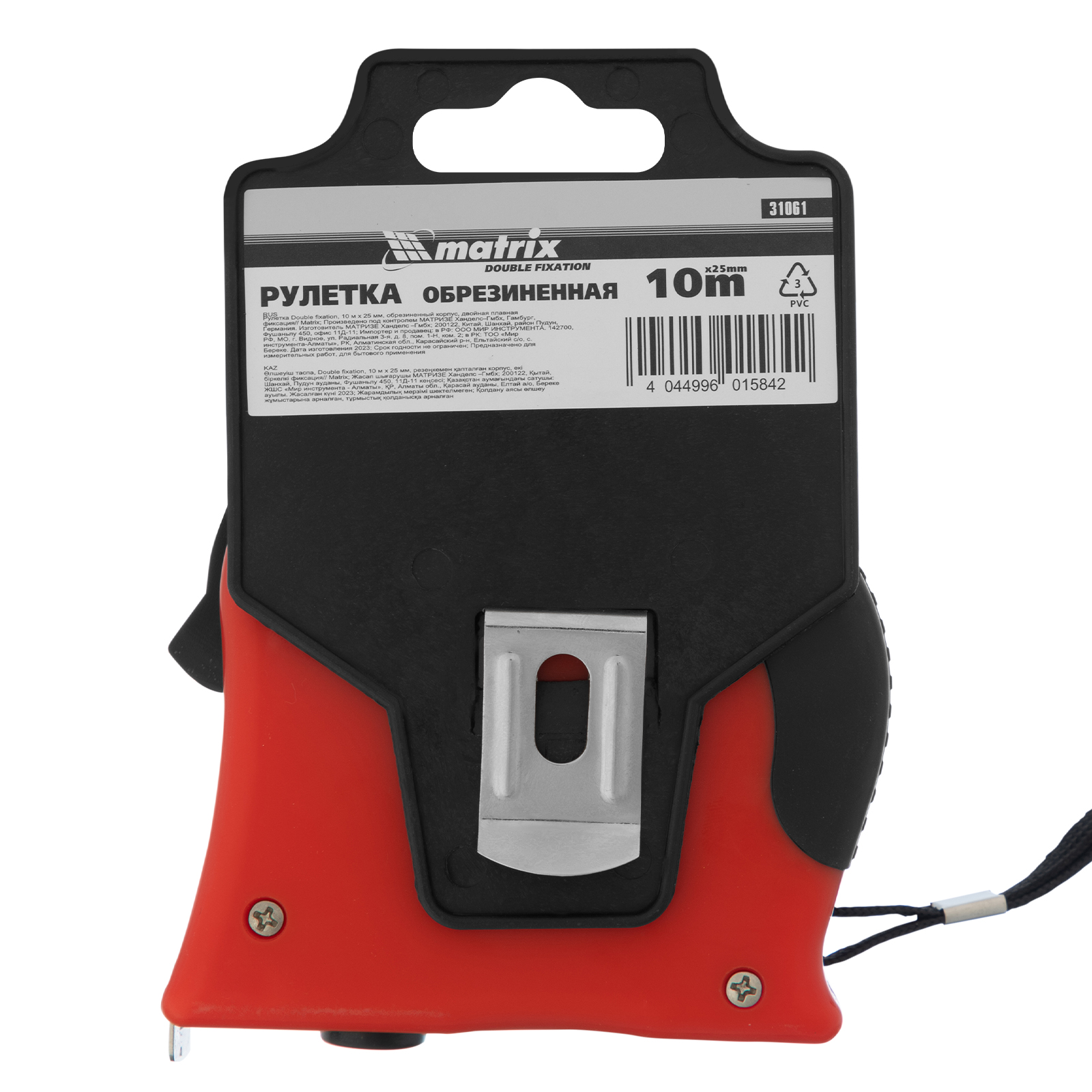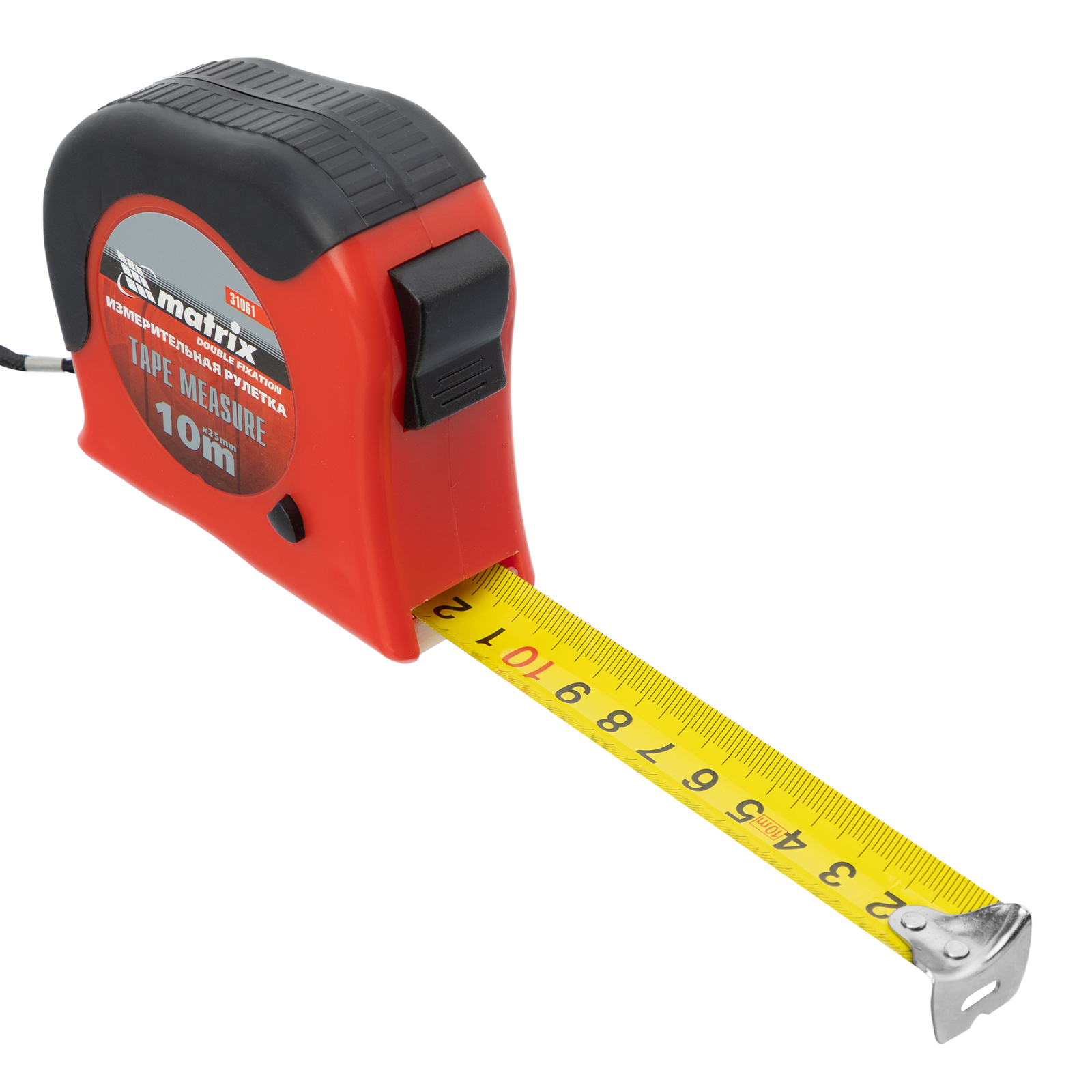 Рулетка Double fixation,10 м х 25 мм,обрезиненный корпус,двойная плавная фиксация Matrix в Воронеже