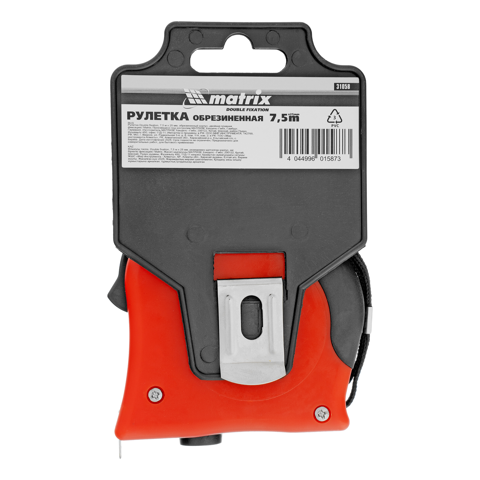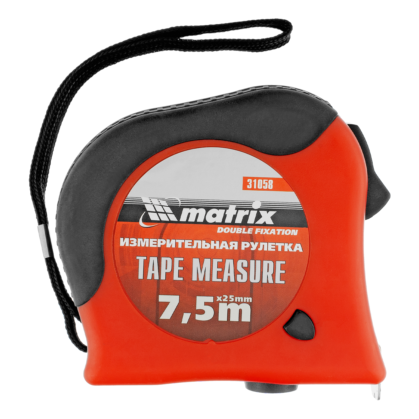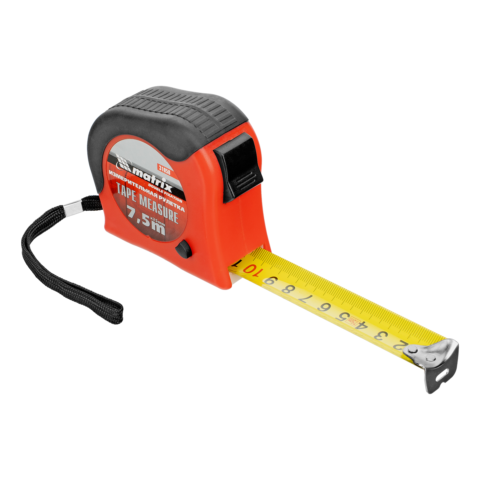 Рулетка Double fixation,7,5 м х 25 мм,обрезиненный корпус,двойная плавная фиксация Matrix в Воронеже