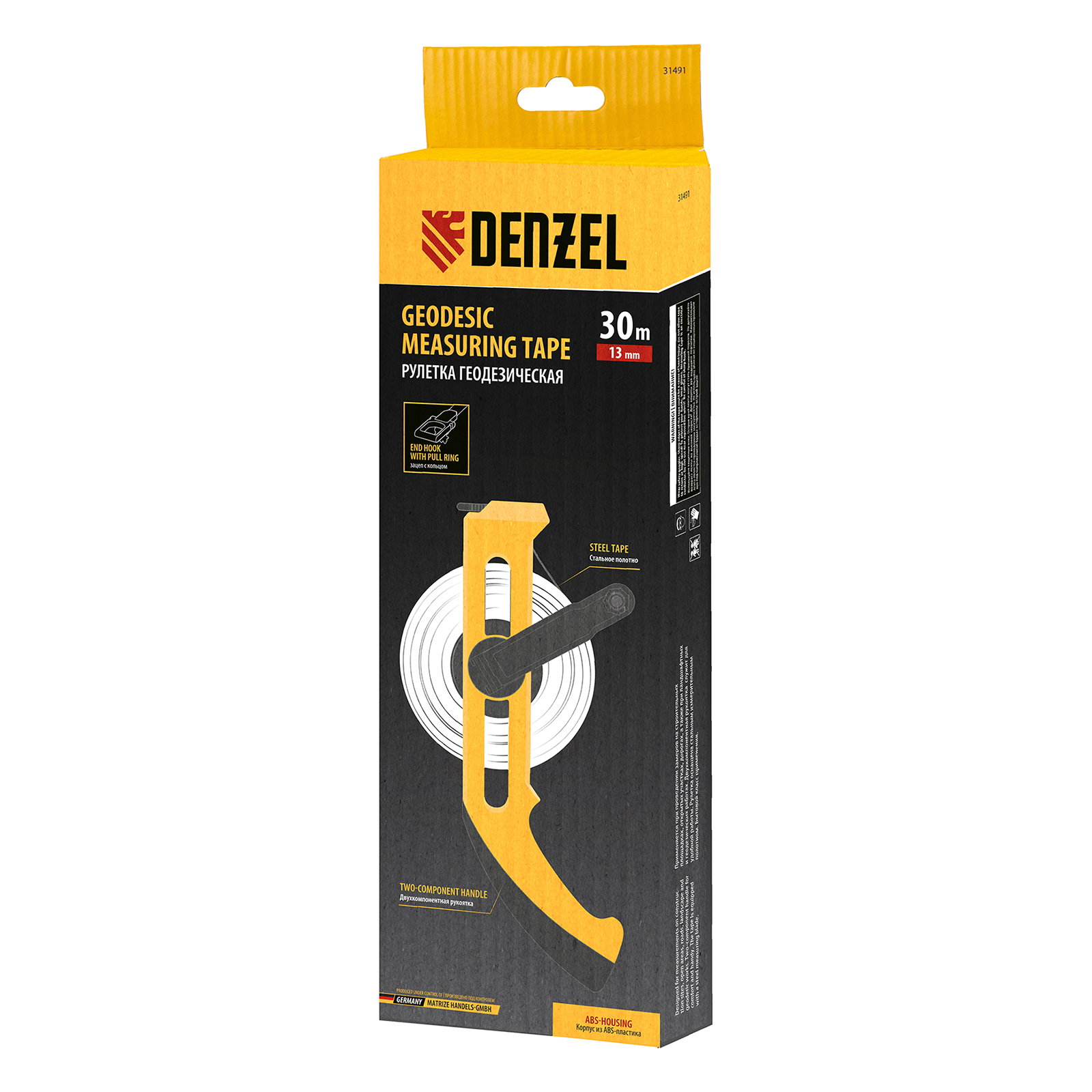 Рулетка геодезическая 30 м х 13 мм, открытый корпус, металлическая лента Denzel в Воронеже