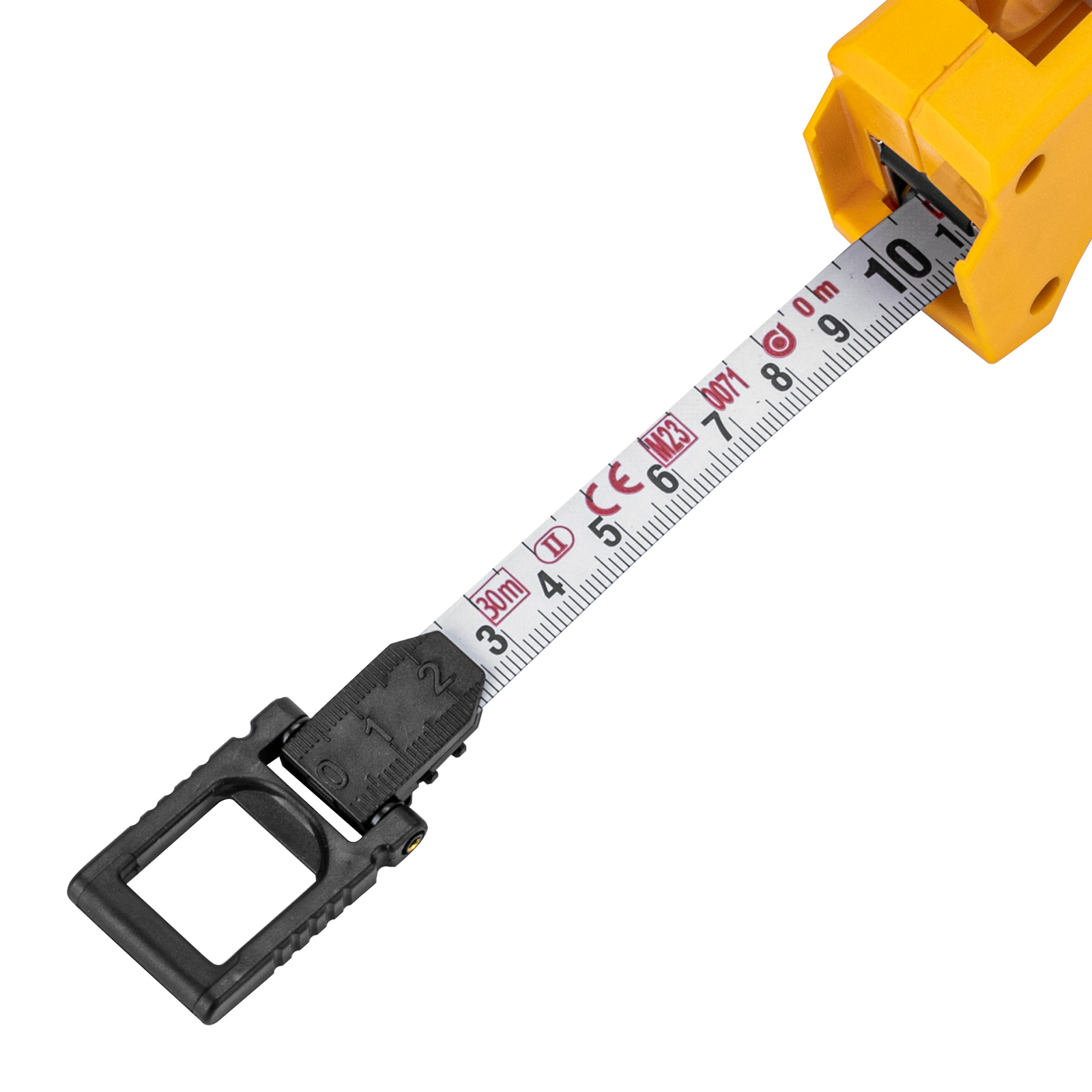 - Удобная фиксация измерительной ленты на объекте — рулетка оснащена кольцом с подвижным зацепом.
