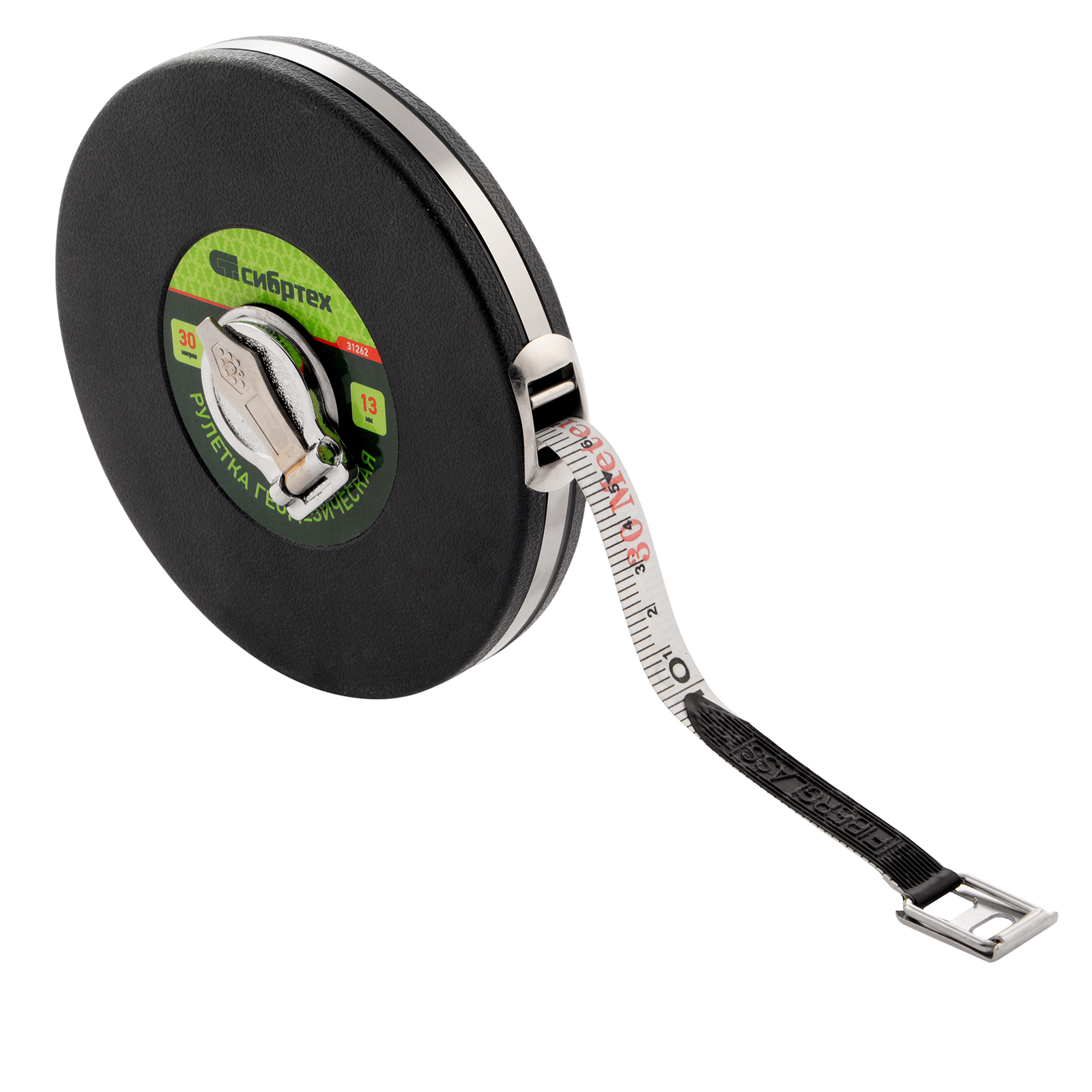 Рулетка геодезическая 30 м х 13 мм, закрытый корпус, фибергласовая лента Сибртех в Воронеже