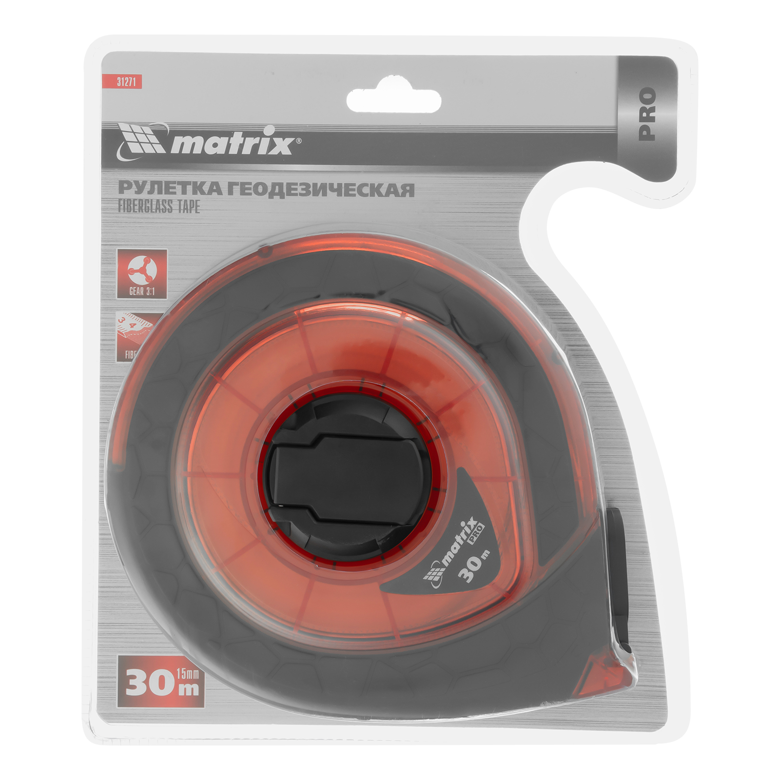Рулетка геодезическая 30 м х 15 мм, закрытый корпус, фибергласовая лента, двусторонняя шкала, Pro Matrix в Воронеже